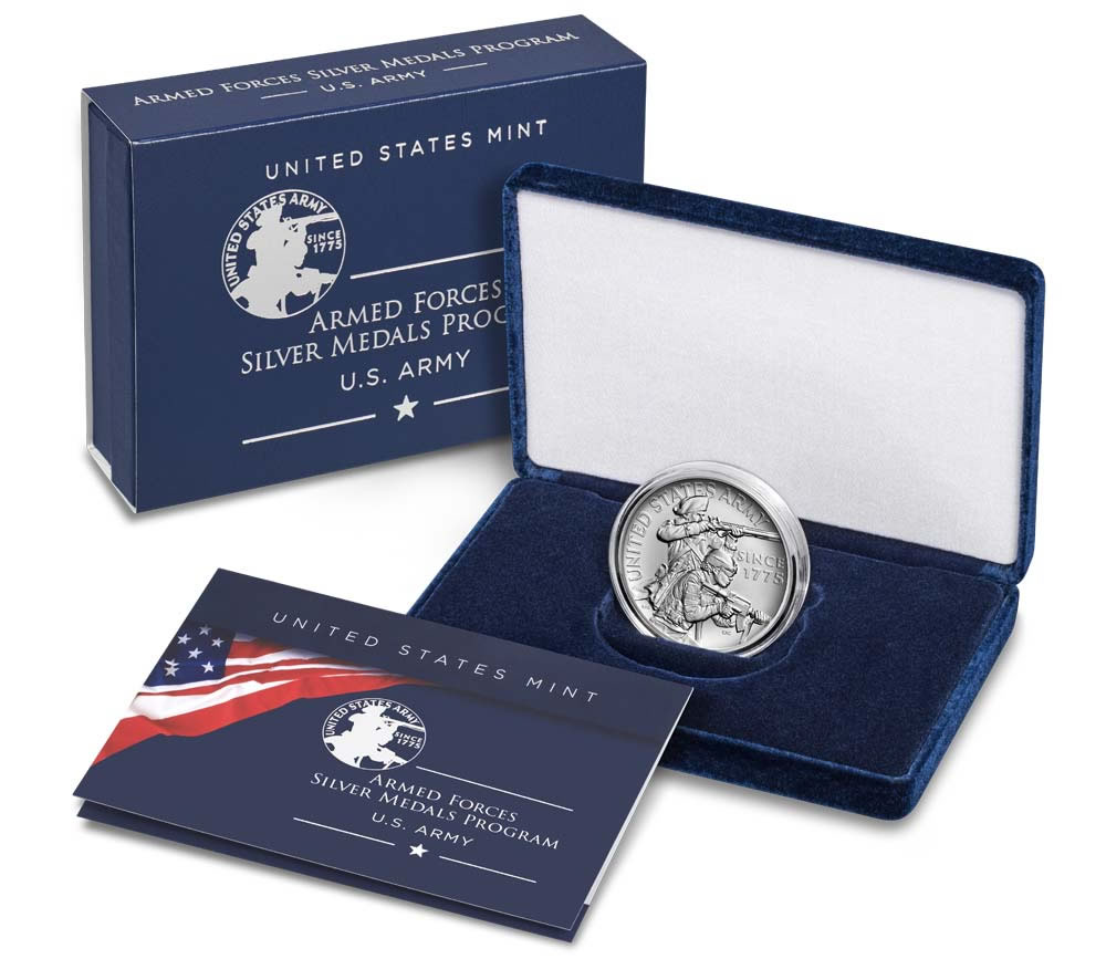 The U.S. Mint’s product page for the Army Silver Medal is located here.