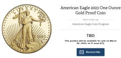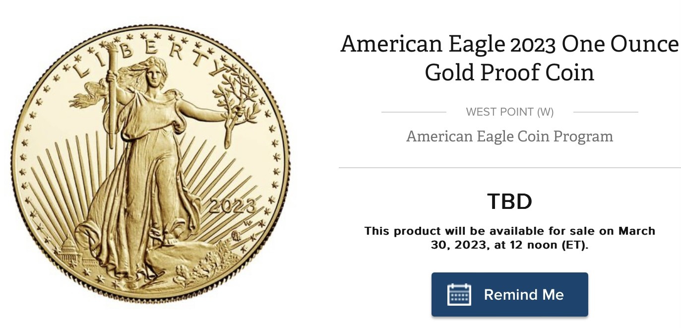 Published United States Mint gold and platinum bullion sales increased Thursday. For the second time this week (and for the year), the 2023 American Platinum Eagle climbed, although its latest pick up was modest. U.S. Mint gold bullion coins, however, posted solid gains. Altogether, U.S. Mint bullion sales included increases of: