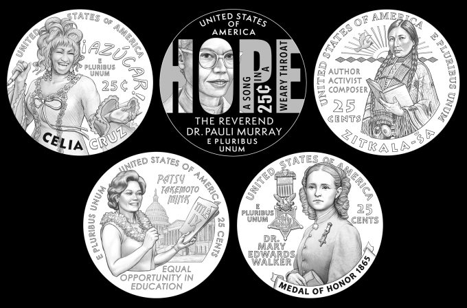 In 2024, the U.S. Mint American Women Quarters™ Program will enter its third year of a four-year series that aims to recognize the valuable role of women in American history. The Commission of Fine Arts (CFA) and the Citizens Coinage Advisory Committee (CCAC) has already reviewed reverse designs for the five 2024 quarters honoring Patsy Takemoto Mink, Mary Edwards Walker, Pauli Murray, Zitkala-Ša, and Celia Cruz.