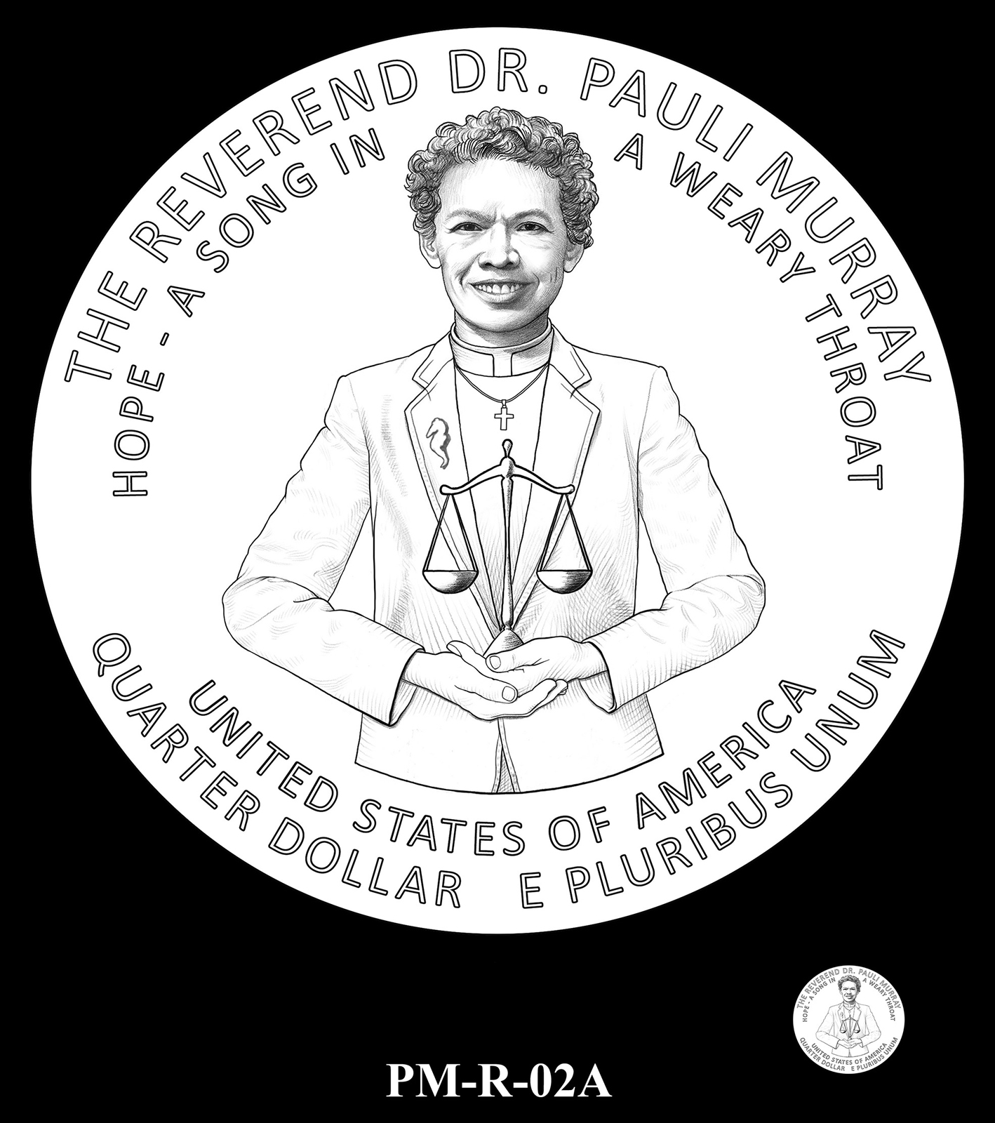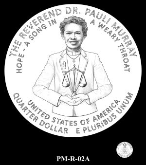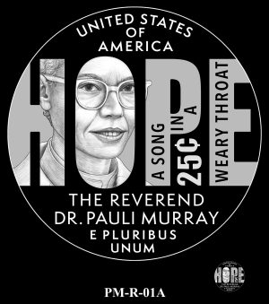 CCAC: For the discussion of the six reverse candidate designs, the CCAC was joined by Ms. Karen Ross, the great niece of Reverend Dr. Pauli Murray and founder of the Pauli Murray Foundation. Following a robust discussion, the CCAC recommended unanimously reverse design PM-R-01A, containing a portrait of Reverend Dr. Pauli Murray within the shape of the letter "O" in the word "HOPE." While not initially favored by Ms. Ross, during our discussion she came to endorse this design due to its uniqueness.