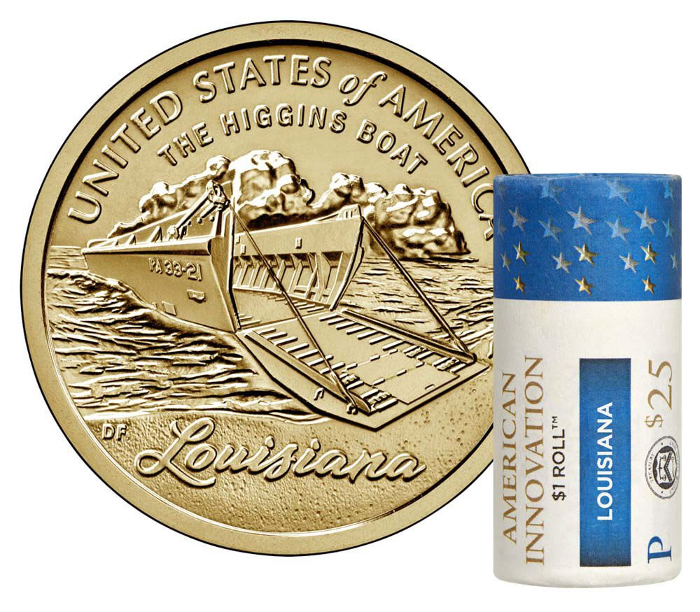 The newest release from the United States Mint highlights American ingenuity. Today at noon ET, rolls and bags of the 2023 Louisiana American Innovation Dollars debut.
