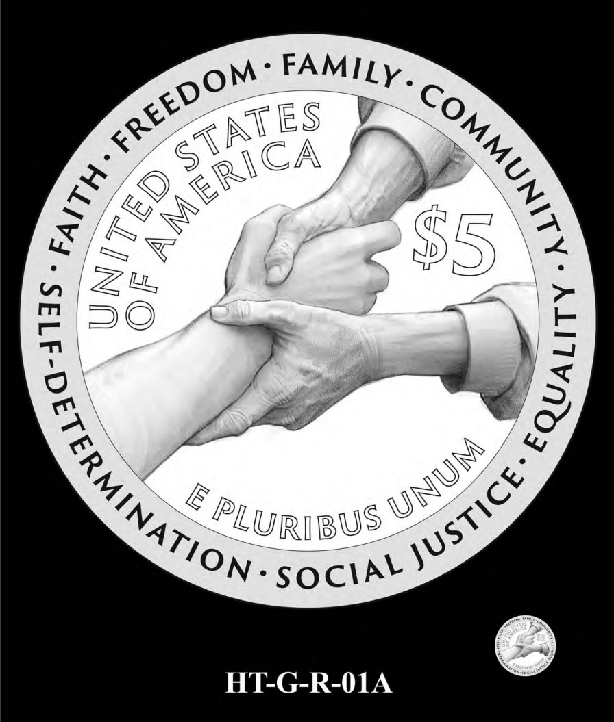 CCAC: The CCAC reviewed six obverse and six reverse candidate designs for the one-dollar silver commemorative coin. Unanimously, the CCAC recommended obverse HT-S-O-01 and reverse HT-S-R-01. Both of these are the preferences of the liaisons.