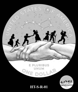 CFA: For the coin honoring Tubman’s contributions prior to the Civil War, as part of this three-coin sequence depicting the course of her life, the Commission members recommended alternative S-O-01 for the obverse, consistent with the preferences of the CCAC and the liaisons. They recommended refining the portrait to more clearly depict Tubman as a young Black woman. For the reverse, the Commission members commented that the silhouette composition of S-R-01 — the preference of the CCAC and the liaisons — would uncomfortably reduce the subjects to anonymous figures. They expressed support for alternative S-R-08 as a strong representation of providing assistance to escape bondage, but they were dismayed to learn that this composition has recently been used for another coin; they recommended developing this concept as a new composition for this coin. They suggested that the north star, a motif seen in several other alternatives, could be included in this new design.