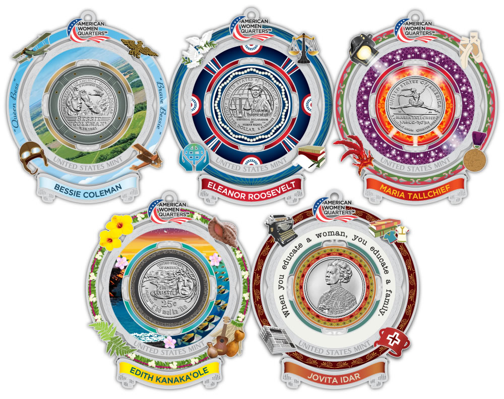 On Aug. 24, the United States Mint will present a selection of five distinctively designed ornaments, with each showcasing one of the five 2023 American Women quarter dollars from the ongoing four-year series that began last year