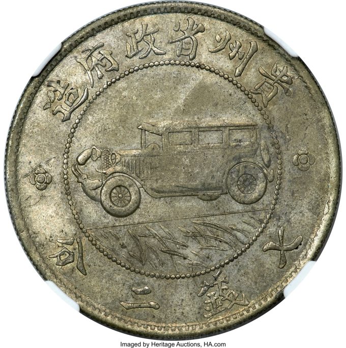 The event included three Kweichow "Auto" dollars, a trio that was led by a spectacular Kweichow. Republic "Auto" Dollar Year 17 (1928) MS62 NGC that set a world record when it drew a winning bid of $336,000. Tied for the second-finest of the type, it was commissioned by governor Chow Hsi-chen to commemorate the completion of the first provincial highway in Kweichow, this issue departed from tradition by featuring the governor’s car as the centerpiece of its design, a declaration not only of the import of Chinese modernization efforts, but of their successful execution.