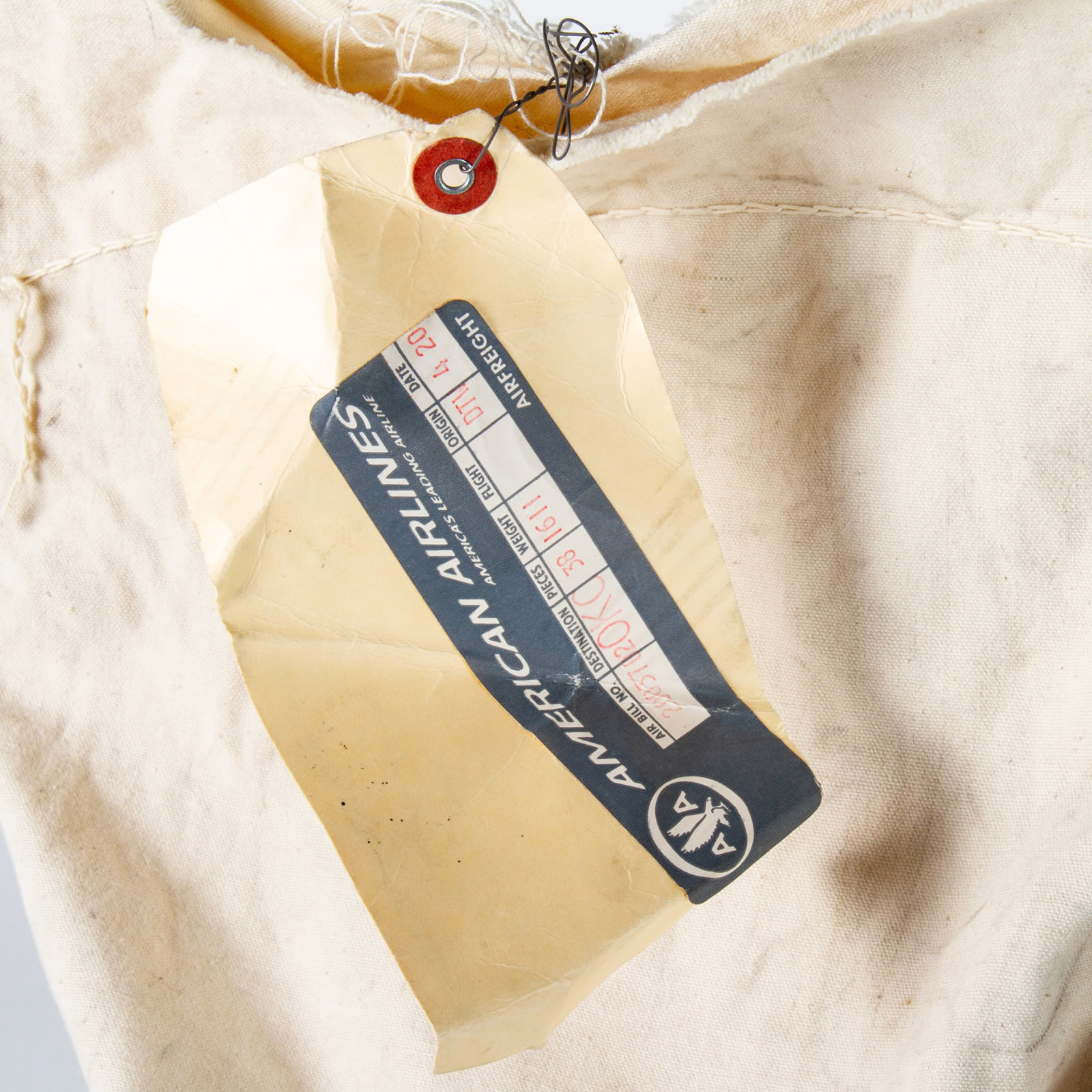 In addition to the mint’s original stitching to seal the bag, there is an American Airlines tag dated April 20, 1967 when it was shipped to Oklahoma where the retired father then lived.