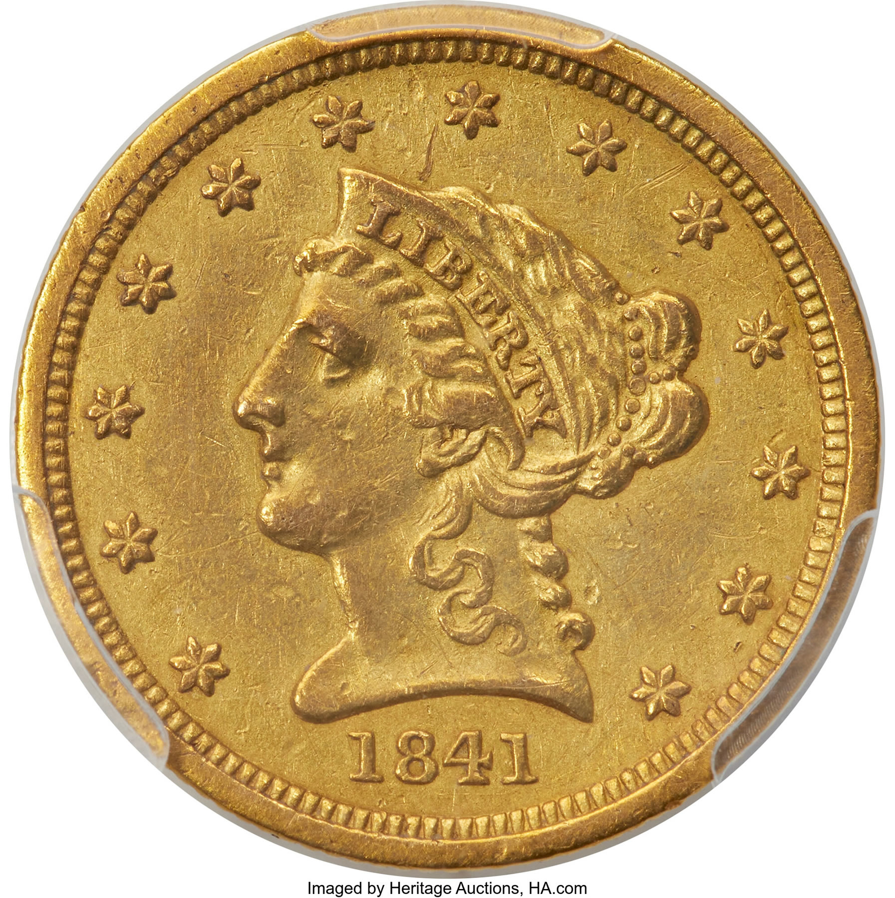 The event marked the first time in 45 years that the 1841 Quarter Eagle VF35 PCGS. Struck from the JD-1 dies, High R.6 had reached the auction block; longtime numismatic expert Norman Stack tagged the coin with the "Little Princess" nickname in the description for a 1954 Davis-Graves auction, and the moniker has remained ever since.