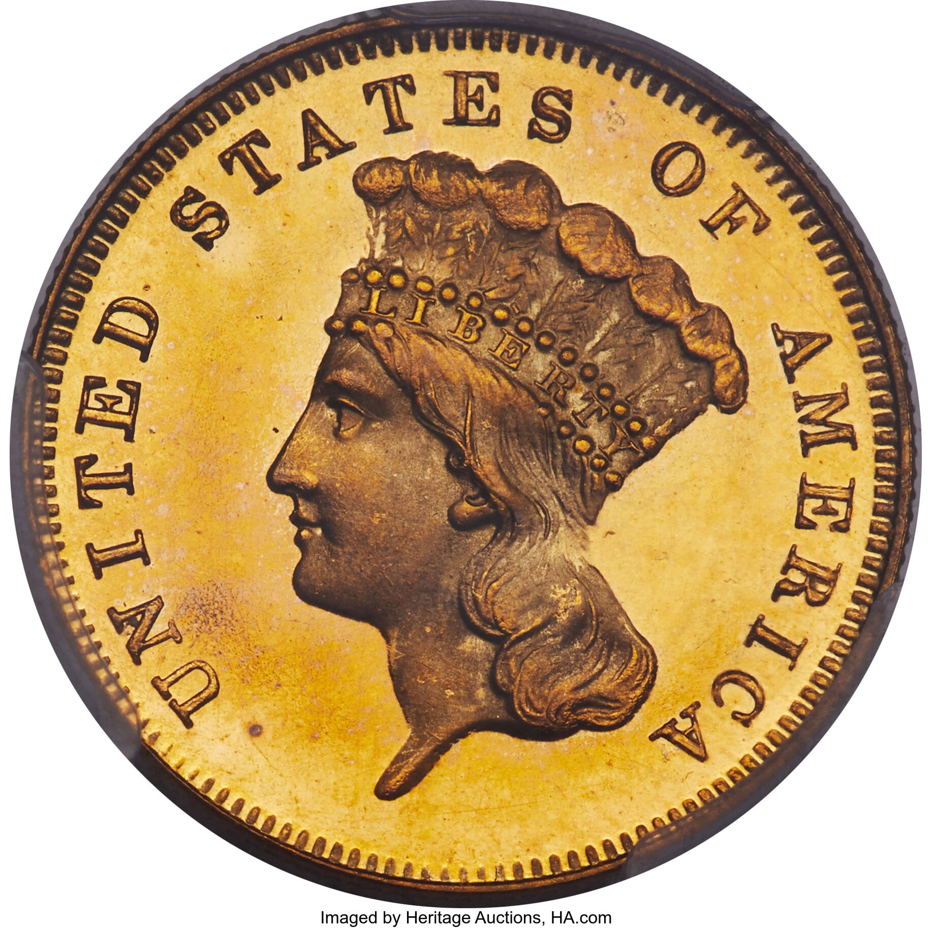 The 1841 Quarter Eagle was challenged for top-lot honors by an 1874 Three Dollar, PR66 Cameo that drew a winning bid of $144,000. This beauty has one of the lowest proof mintages in the entire era of publicly sold proofs; 20 proofs were struck for this issue, of which only 12 to 14 are believed to remain today, according to John Dannreuther.