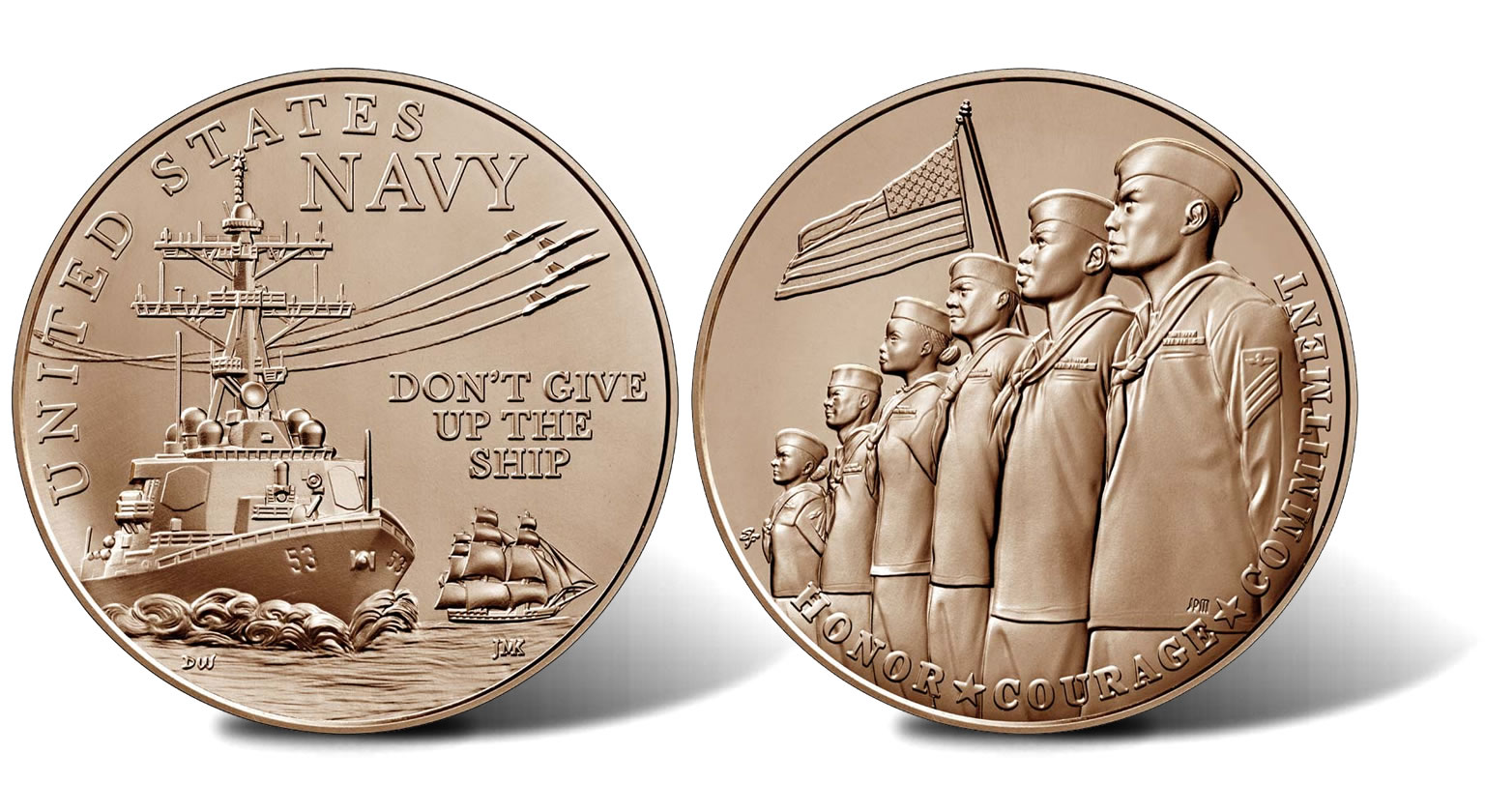 Today, August 8th, the United States Mint released the U.S. Navy Bronze Medal, available for $20. Designs on the new medal pay tribute to the United States Navy, and have already appeared on the previously issued Navy 2.5- and 1-ounce silver medals.