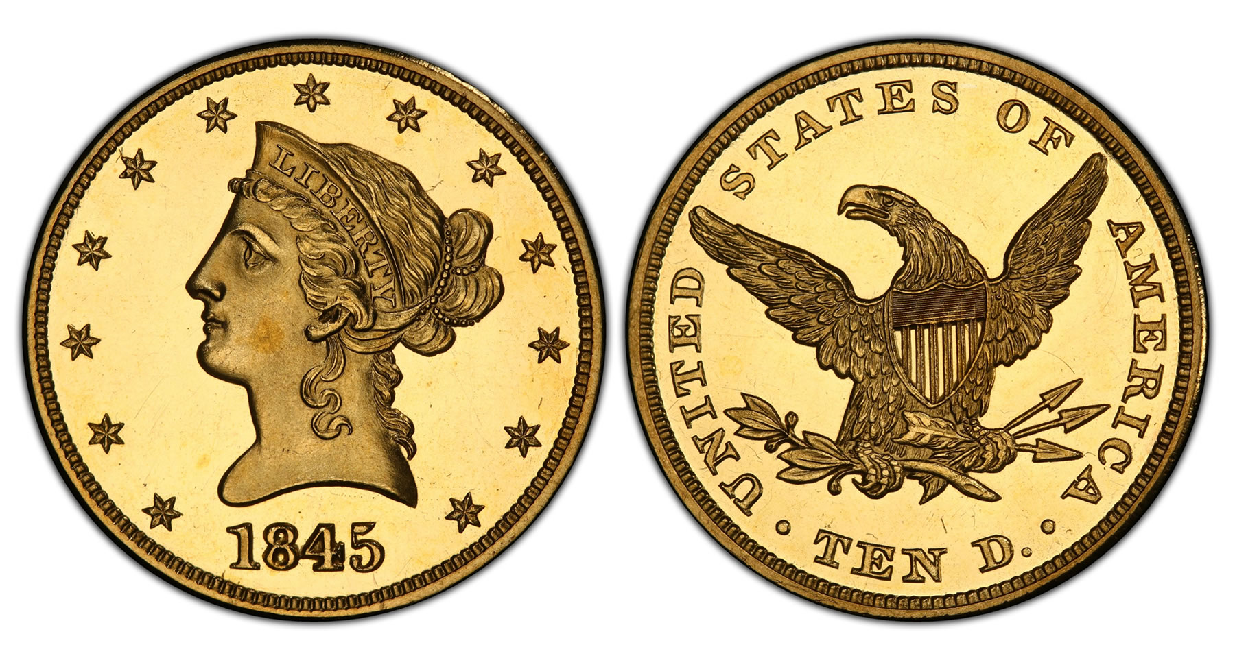 "The early, specially-struck U.S. proof coins are sometimes known as ‘Master Coins,’ and in 1845 there were only a few collectors who could afford to acquire them. This set has the finest known examples of that year: Quarter Eagle ($2.50 denomination gold) graded PCGS PR66+ CAM; Half Eagle ($5) PCGS PR66 DCAM; and Eagle ($10) PCGS PR65 CAM," said Tangible Investments Founder and President Silvano DiGenova.