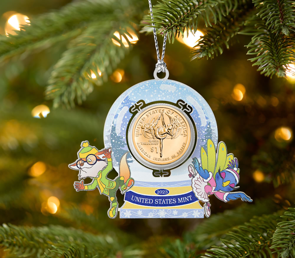 For younger or potential coin enthusiasts, the U.S. Mint offers its 2023 Mighty Minters Ornament, featuring a snow globe design with the theme "Dancing for Joy.