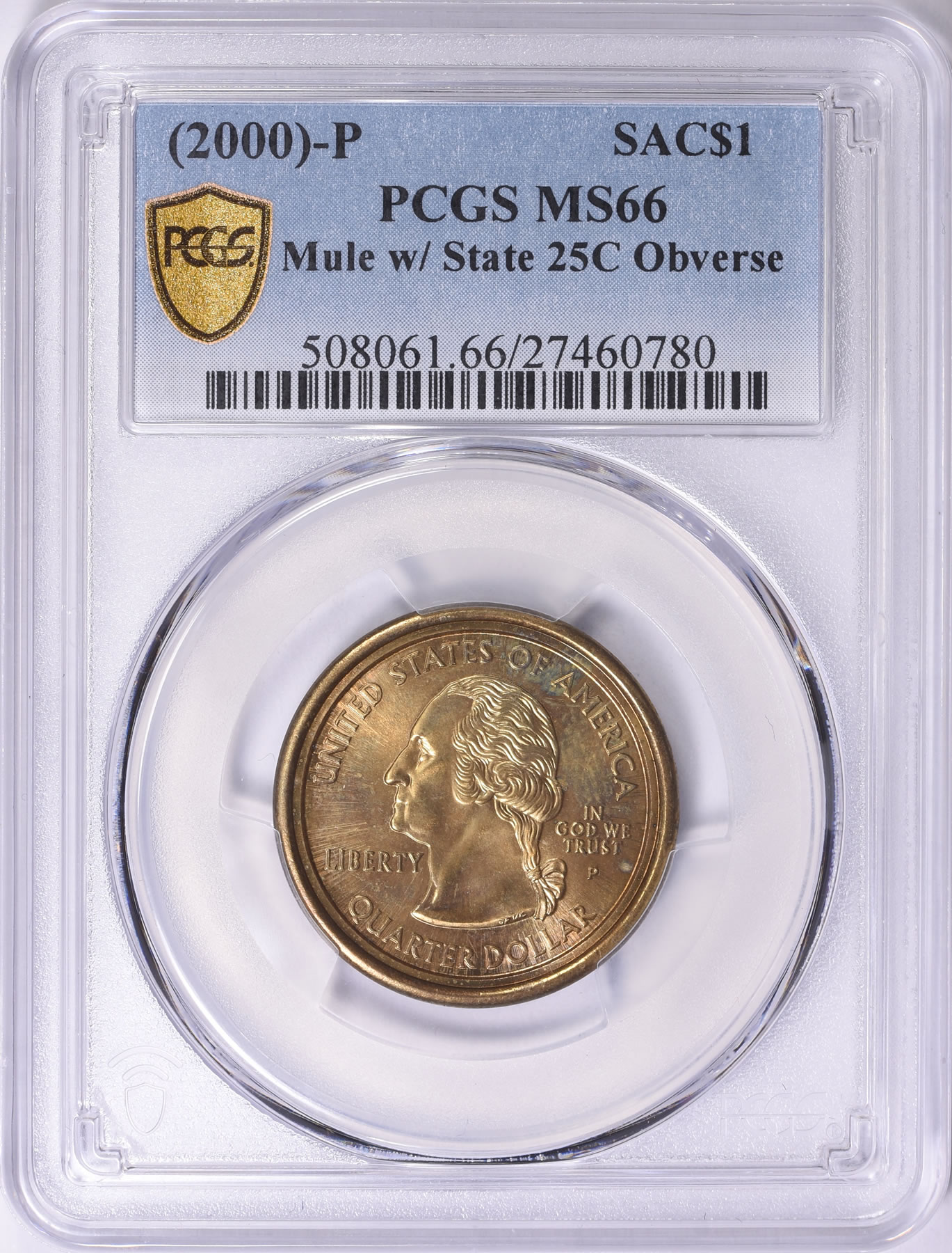 The Sacagawea Mule PCGS MS-66 is being auctioned by GreatCollections unreserved on Sunday, January 21, 2024. To view the auction listing and high quality images, visit www.greatcollections.com.