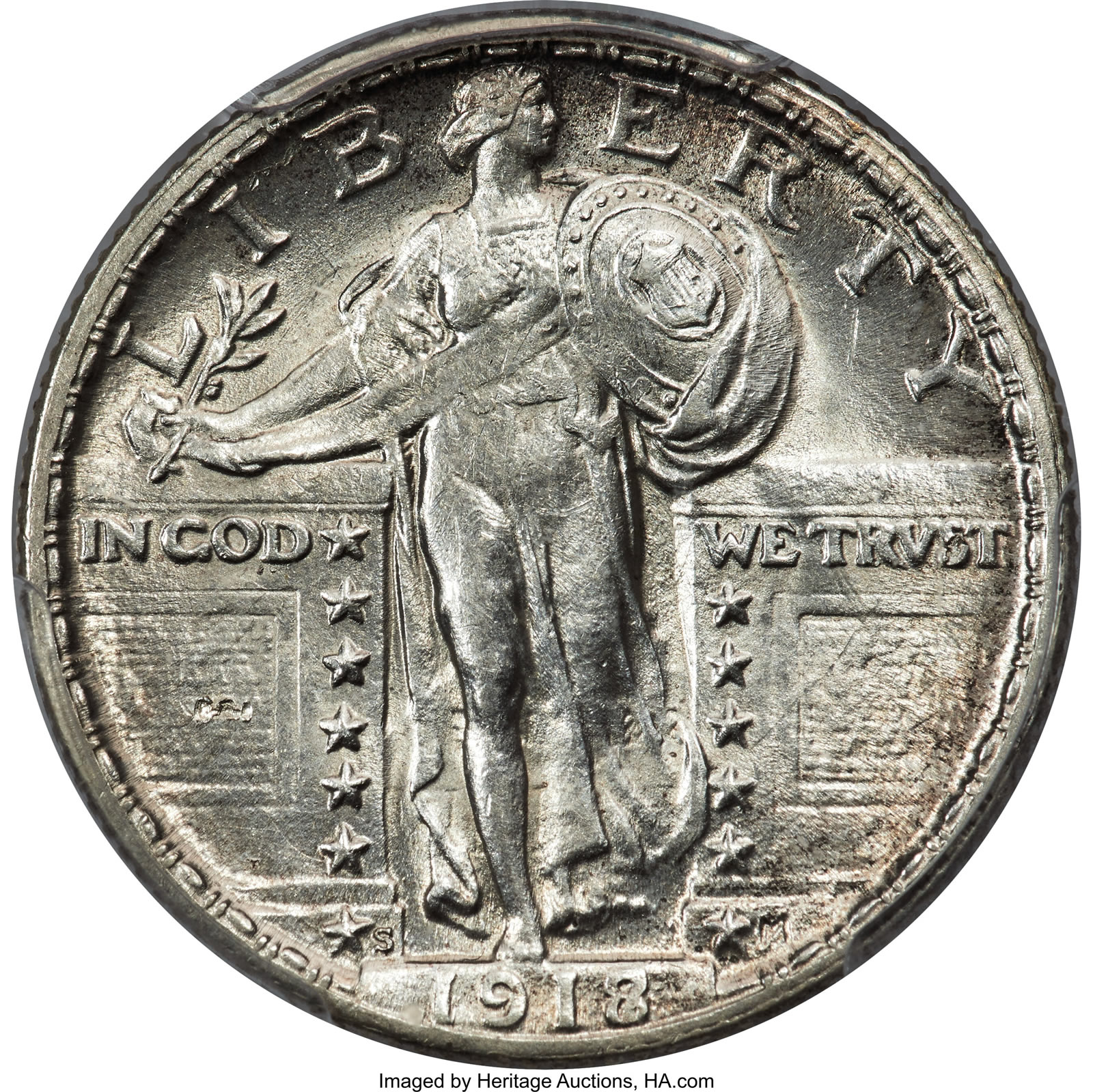 The auction features 28 lots from The James F. Holloway Collection that average MS65 grades, among them a 1918/7-S Standing Liberty Quarter MS62 Full Head PCGS, CAC. The 1918/7-S Standing Liberty quarter is the clear favorite variety of the set, so much so that most collectors don’t pursue any others. Cherrypickers’ Guide lists a few lesser varieties, but those languish in total obscurity compared to the 1918/7-S, the only Cherrypickers’ variety in the Guide Book.
