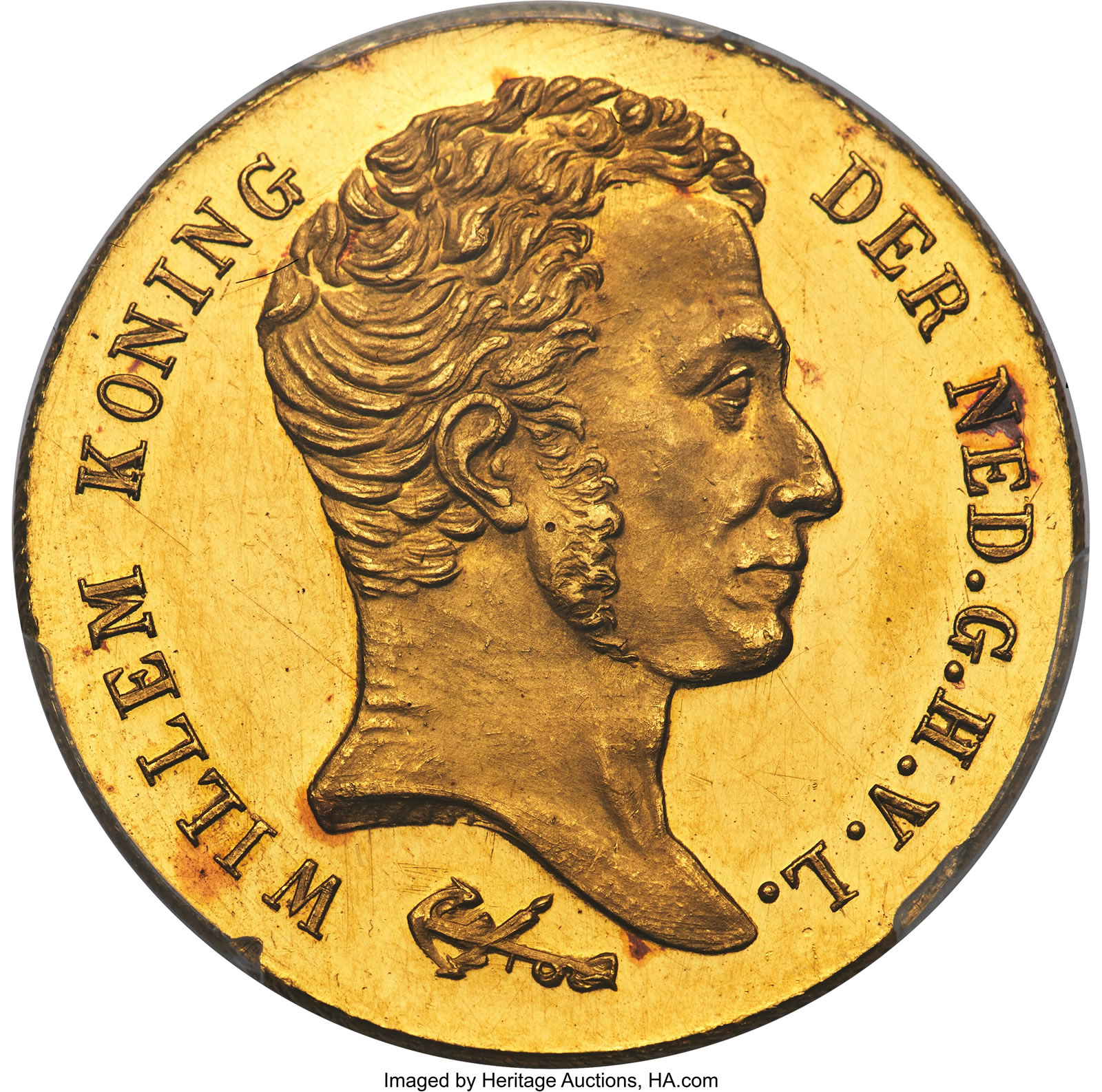 - A Dutch Colony. Willem gold Specimen Gulden 1839 SP62 PCGS – one of two known off-metal N.E.I. gulden: $240,000