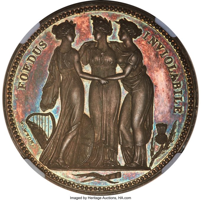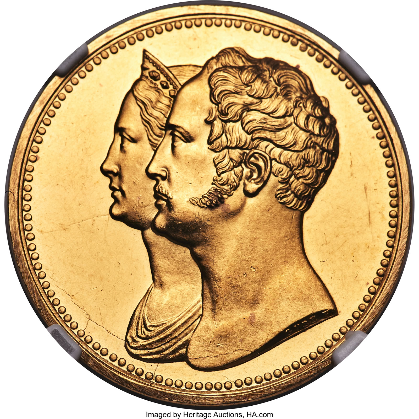 George III silver Proof Pattern Three Graces Crown 1817 PR63 Cameo NGC - A Nicholas I gold Pattern 10 Roubles 1836-CПБ MS62 NGC: $204,000