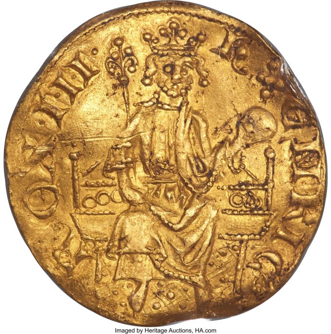 Another British treasure that thrived in the auction was a Henry III (1216-1272) gold Penny of 20 Pence ND (c. 1257) UNC Details (Bent) NGC that closed at $504,000. This beauty is one of just four examples in private hands, and only the second ever handled at Heritage Auctions. It was proposed by British numismatist Sir John Evans to be the "true" first portrait of an English king on the coinage prior to the Tudor issues inaugurated by Henry VII.
