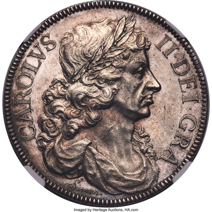 The result for the Charles II silver Pattern "Petition" Crown 1663 MS62 NGC smashed the previous world record for the coin, and was the most ever paid for any British silver coin. It was engraved by Thomas Simon, one of the most celebrated medalists and engravers of 17th-century England. This magnificent example is one of fewer than 20 known examples – seven of which are housed in public institutions and museums.
