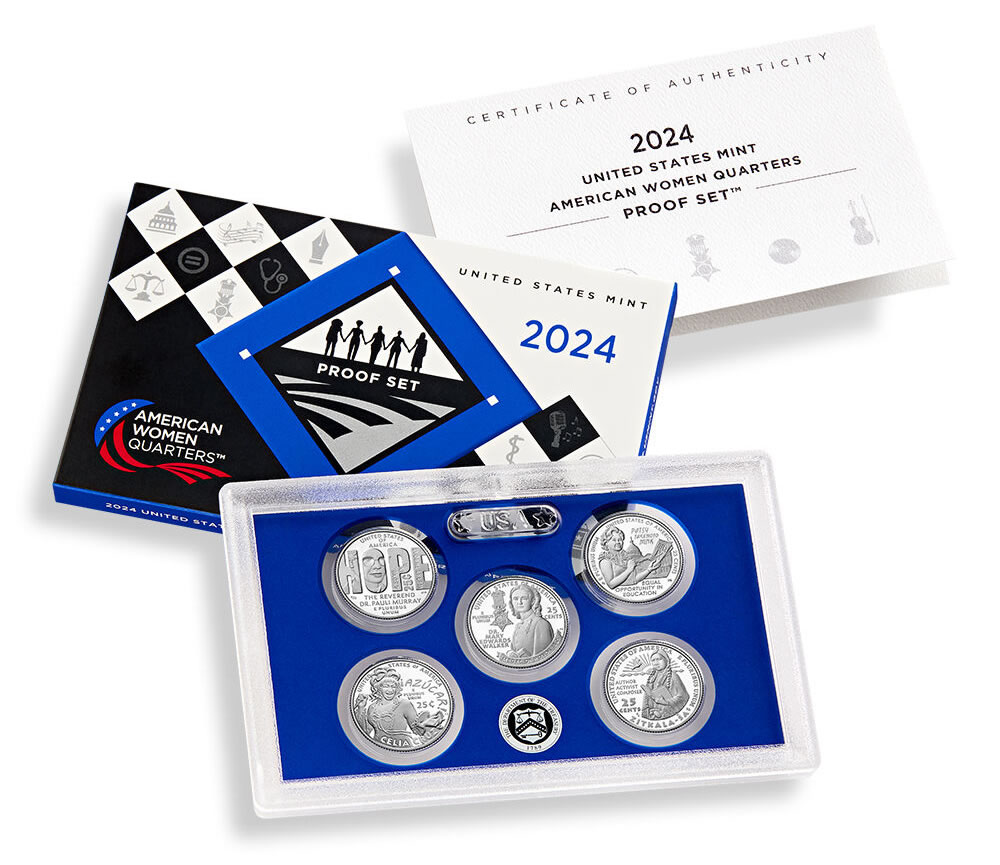 Five collector’s grade quarter dollars are showcased together in the newest product debuting today from the United States Mint: the proof set of 2024 American Women Quarters.