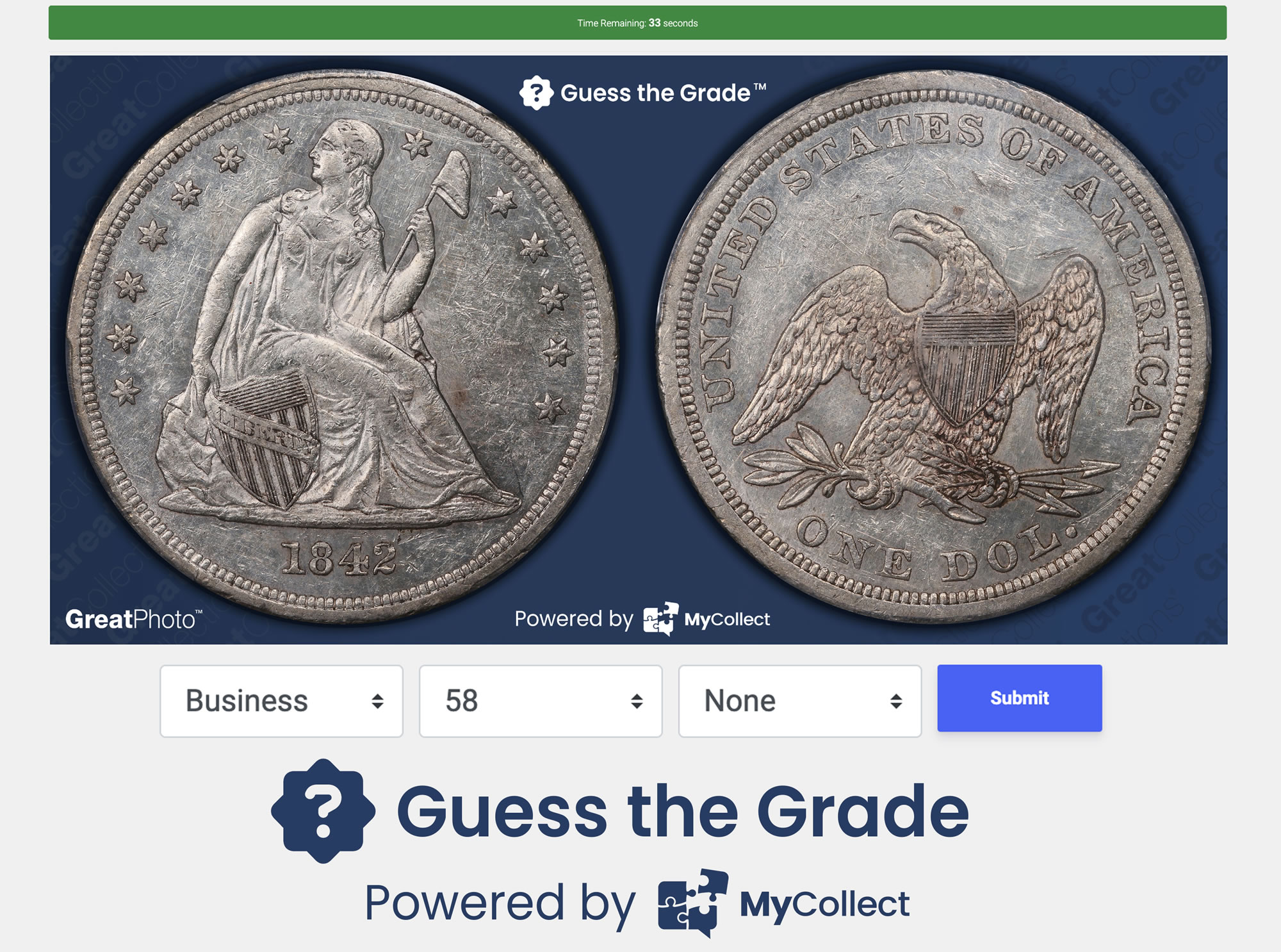 MyCollect is thrilled to announce the official launch of Guess the Grade™, an online interactive game where members can grade coins online and compete with other numismatists.