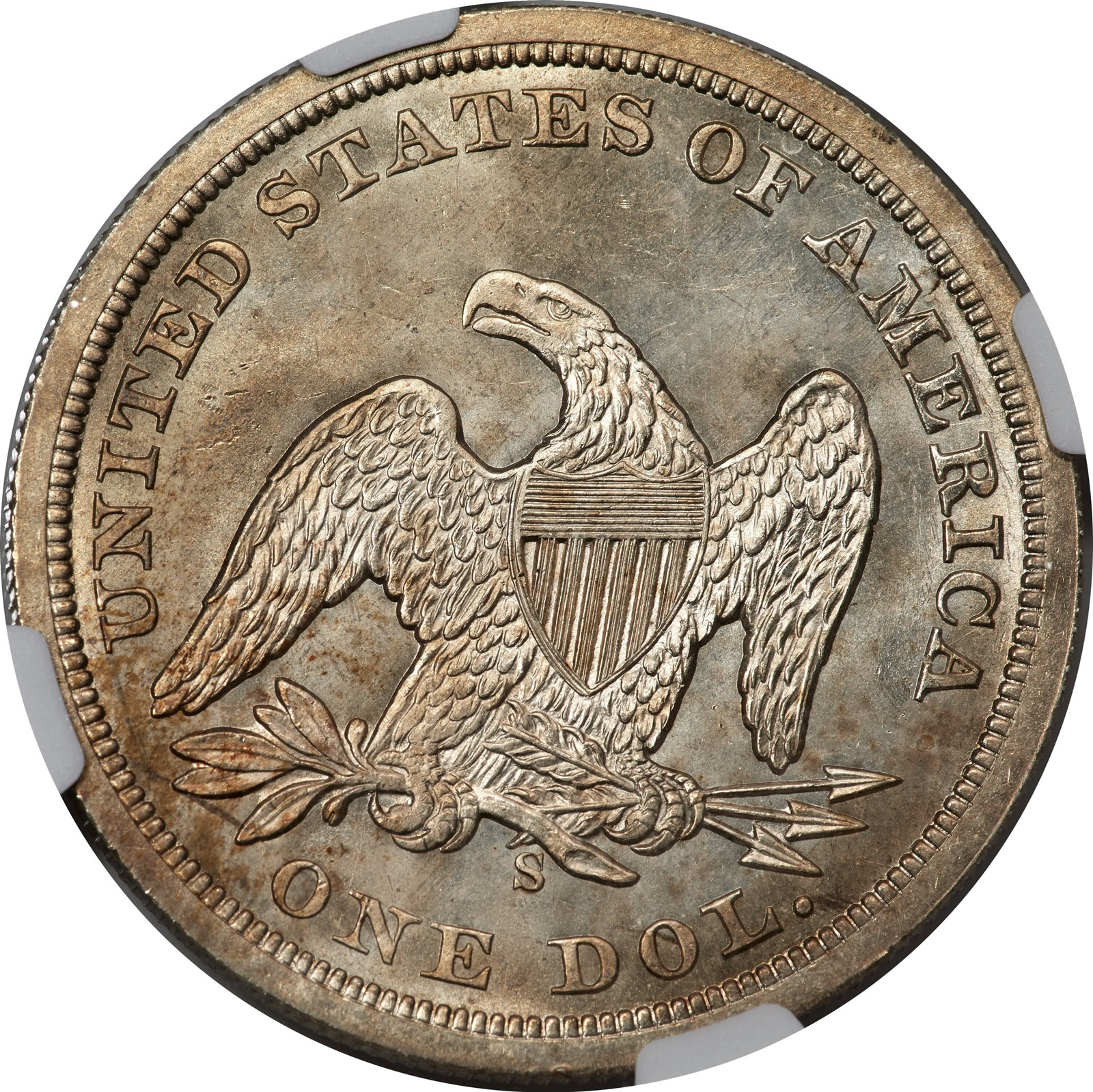 1859-S Seated Dollar, MS64 - An 1801 Draped Bust, Heraldic Eagle Half Dollar O-101, T-2, R.2, AU58 NGC