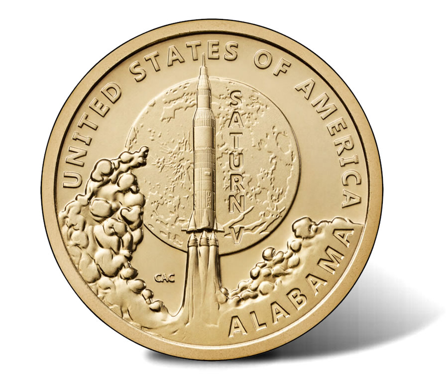 - Alabama $1 Coin – showcasing the Saturn V rocket