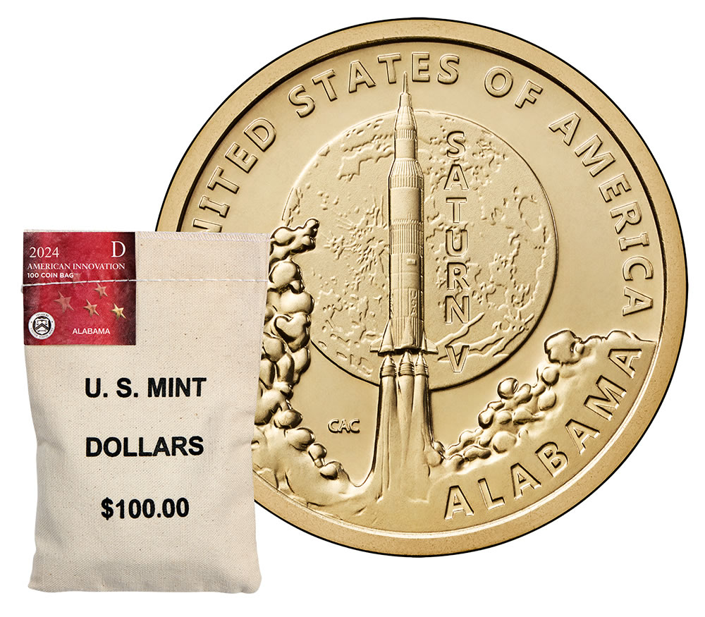 Celebrating the invention of the Saturn V rocket in Alabama and its importance to NASA’s Apollo space program for human exploration to the Moon, the United States Mint today at noon ET releases the newest strike in its American Innovation® $1 Coin Program.