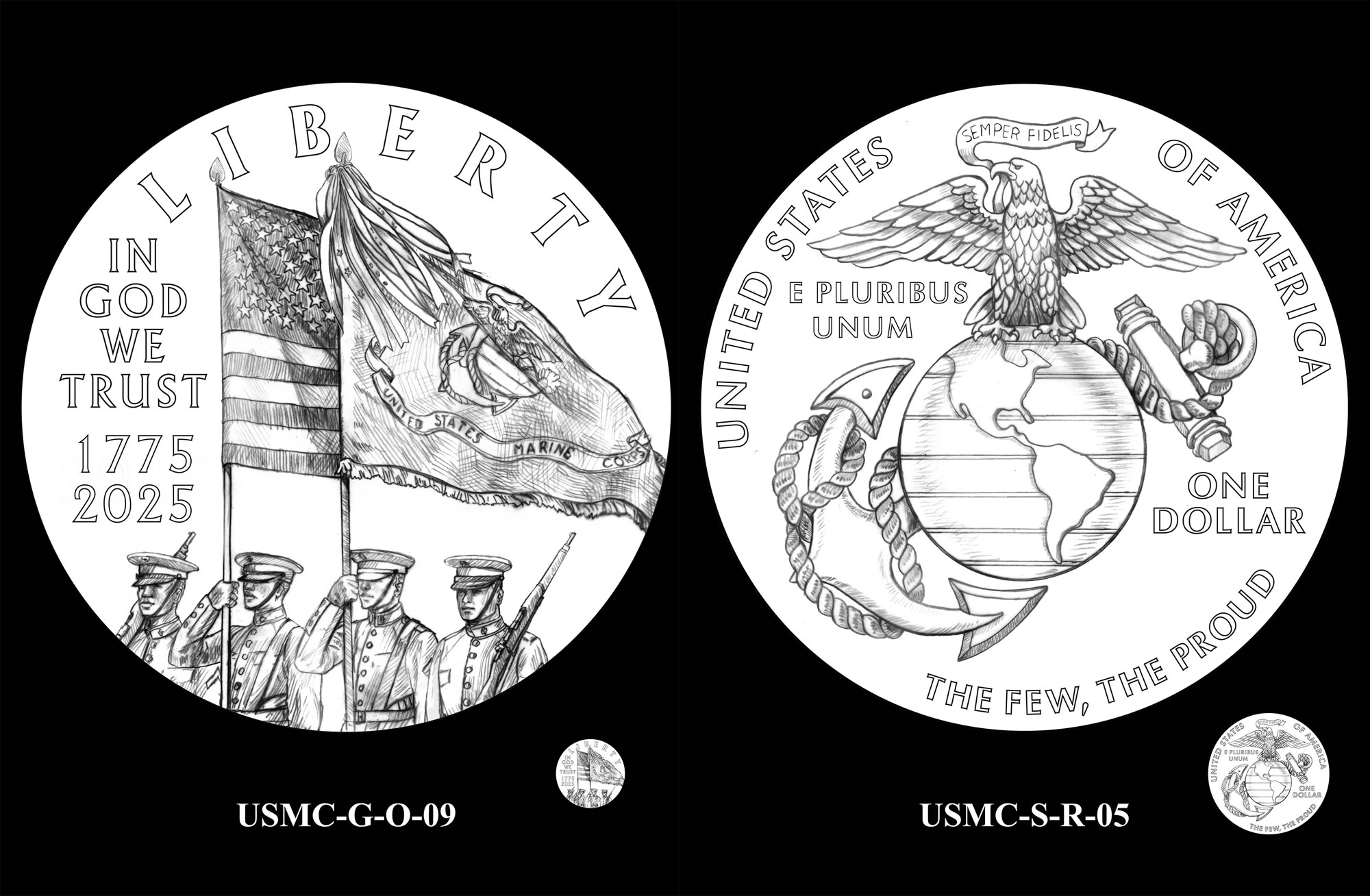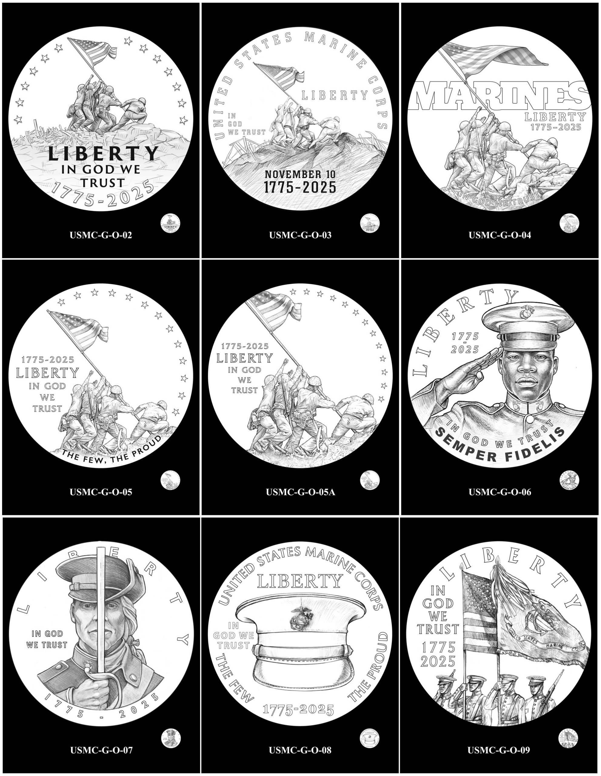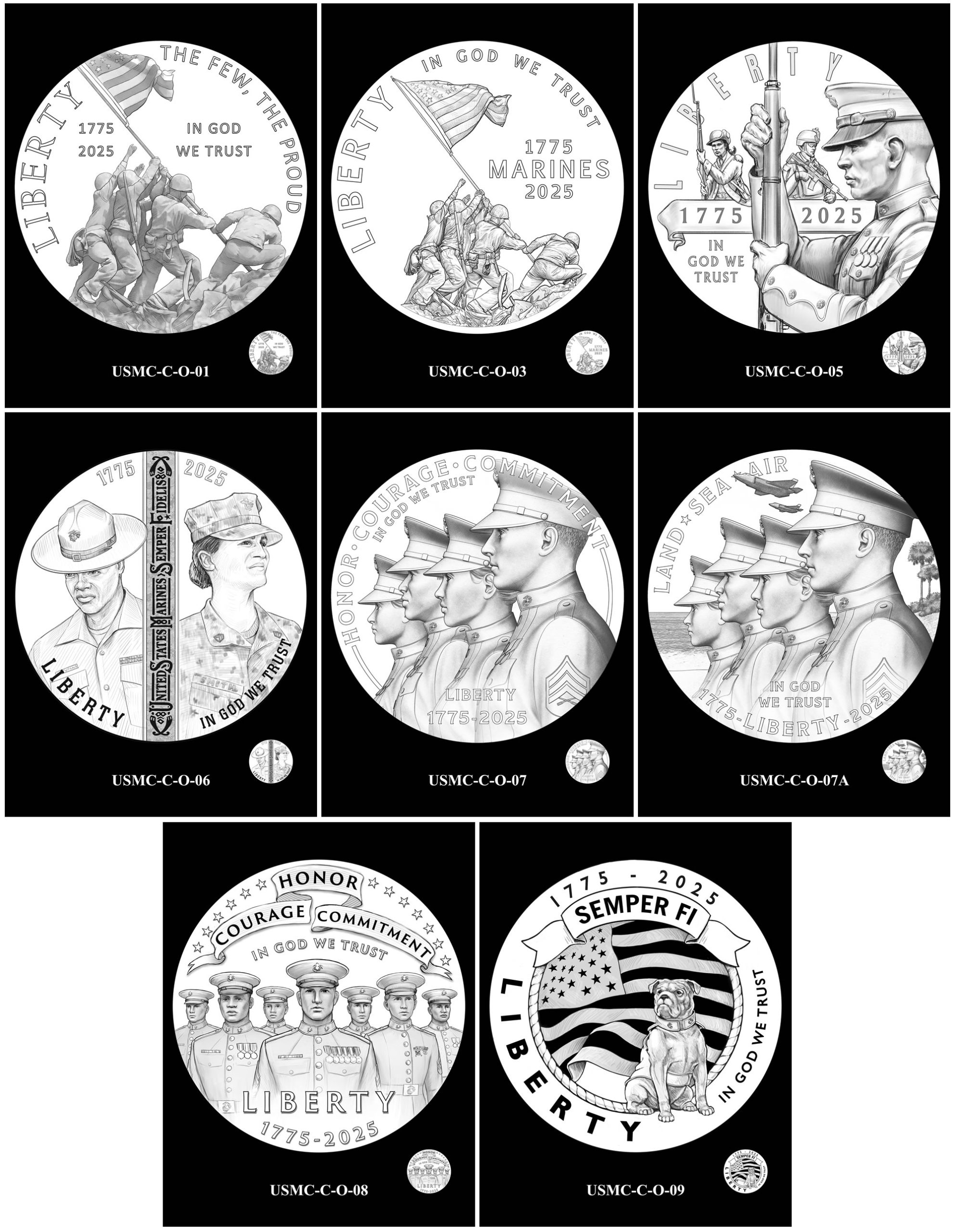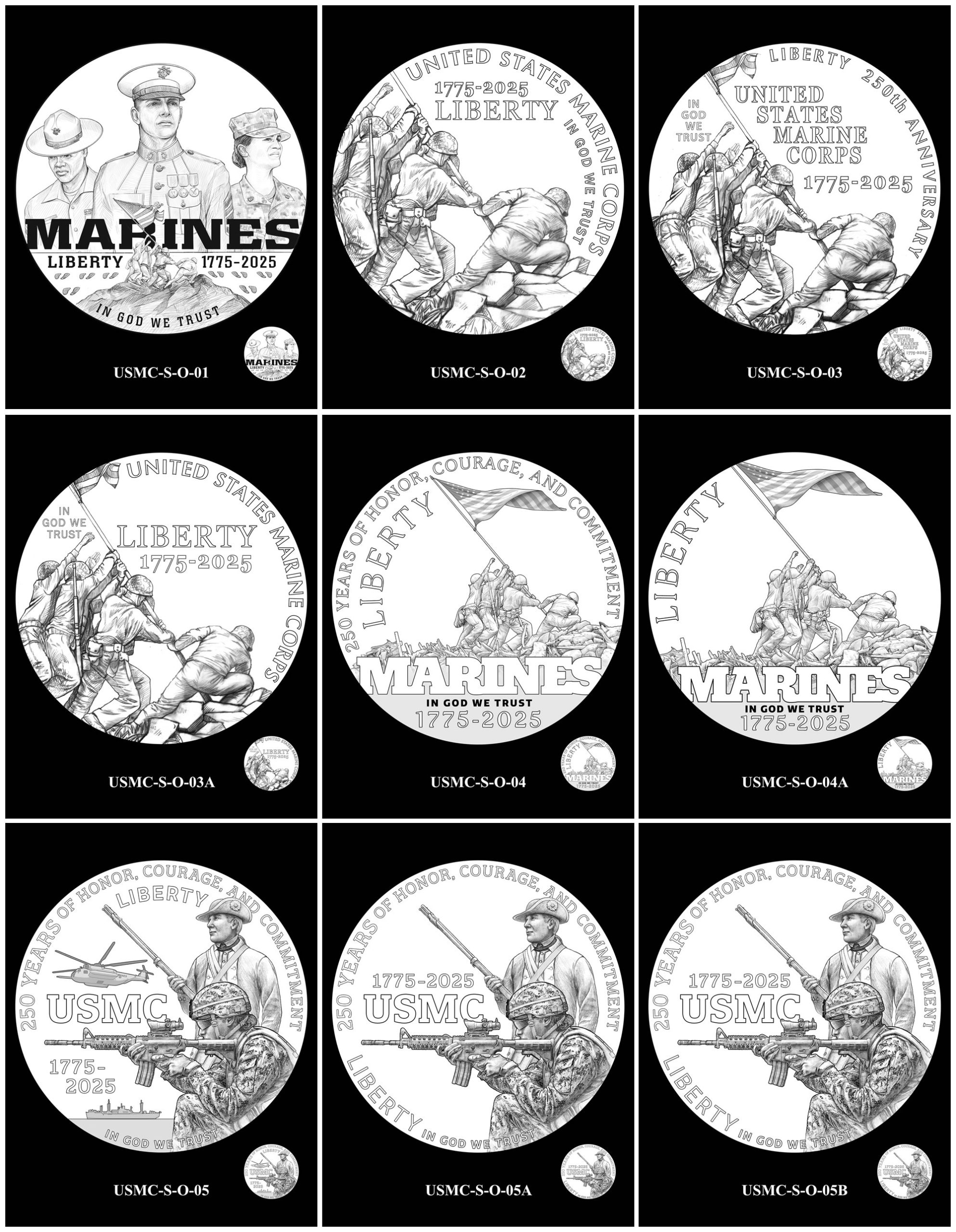The United States Mint revealed over sixty potential designs for commemorative coins that recognize the 250th anniversary of the U.S. Marine Corps in 2025. As directed by Public Law No: 118-10, the U.S. Mint will manufacture and sell $5 gold coins, silver dollars, and clad half dollars as a part of the anniversary celebration.
