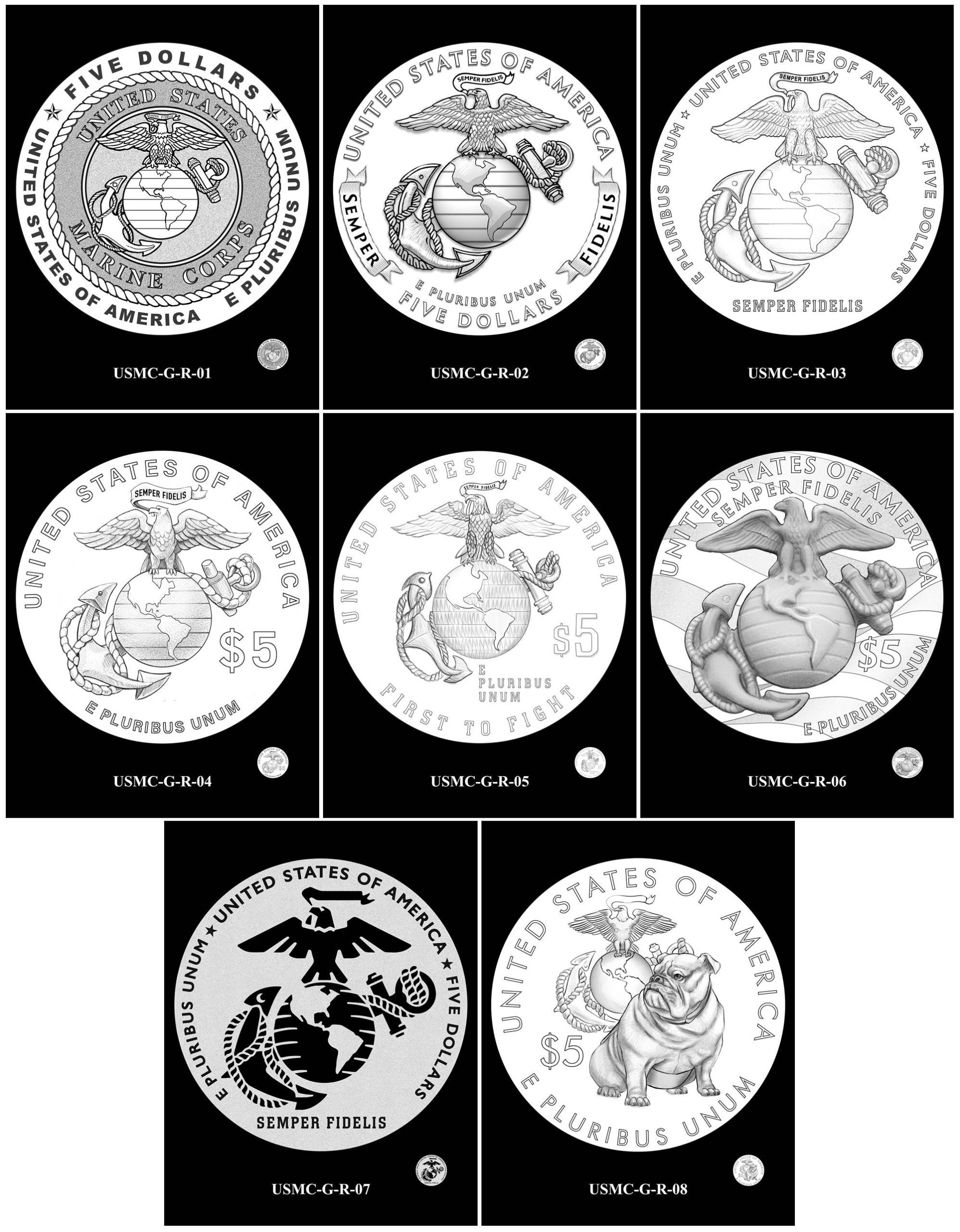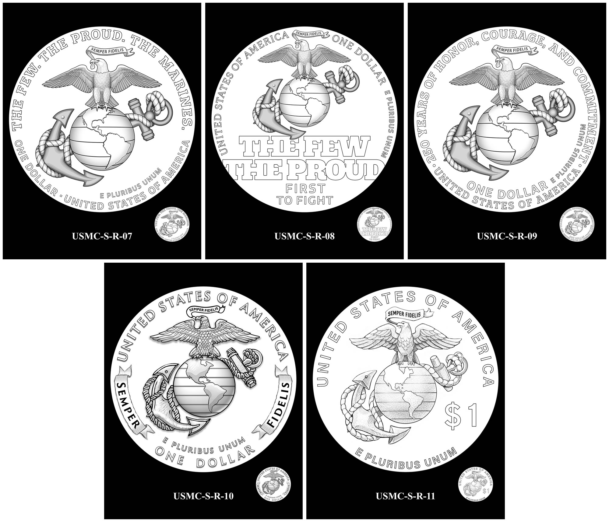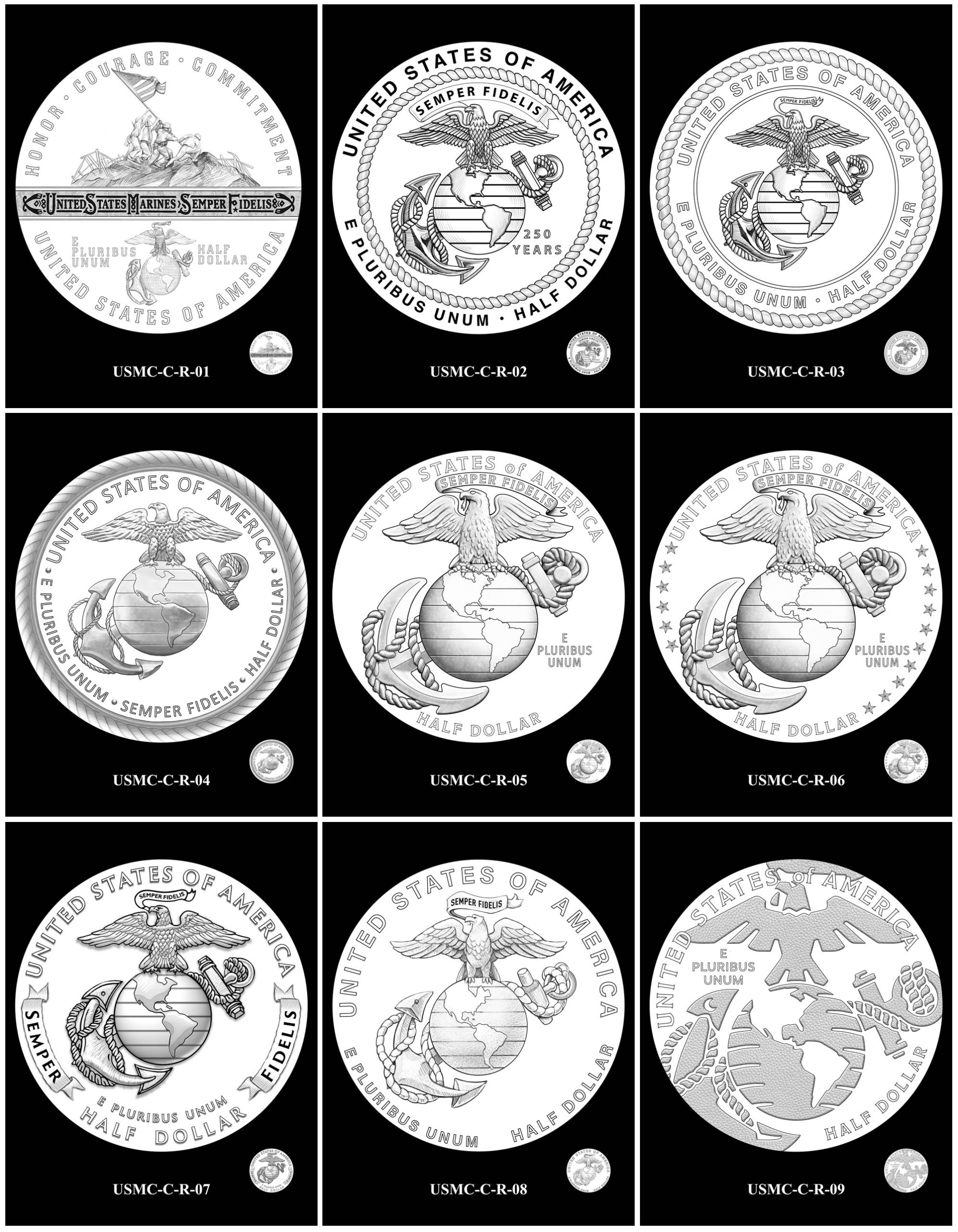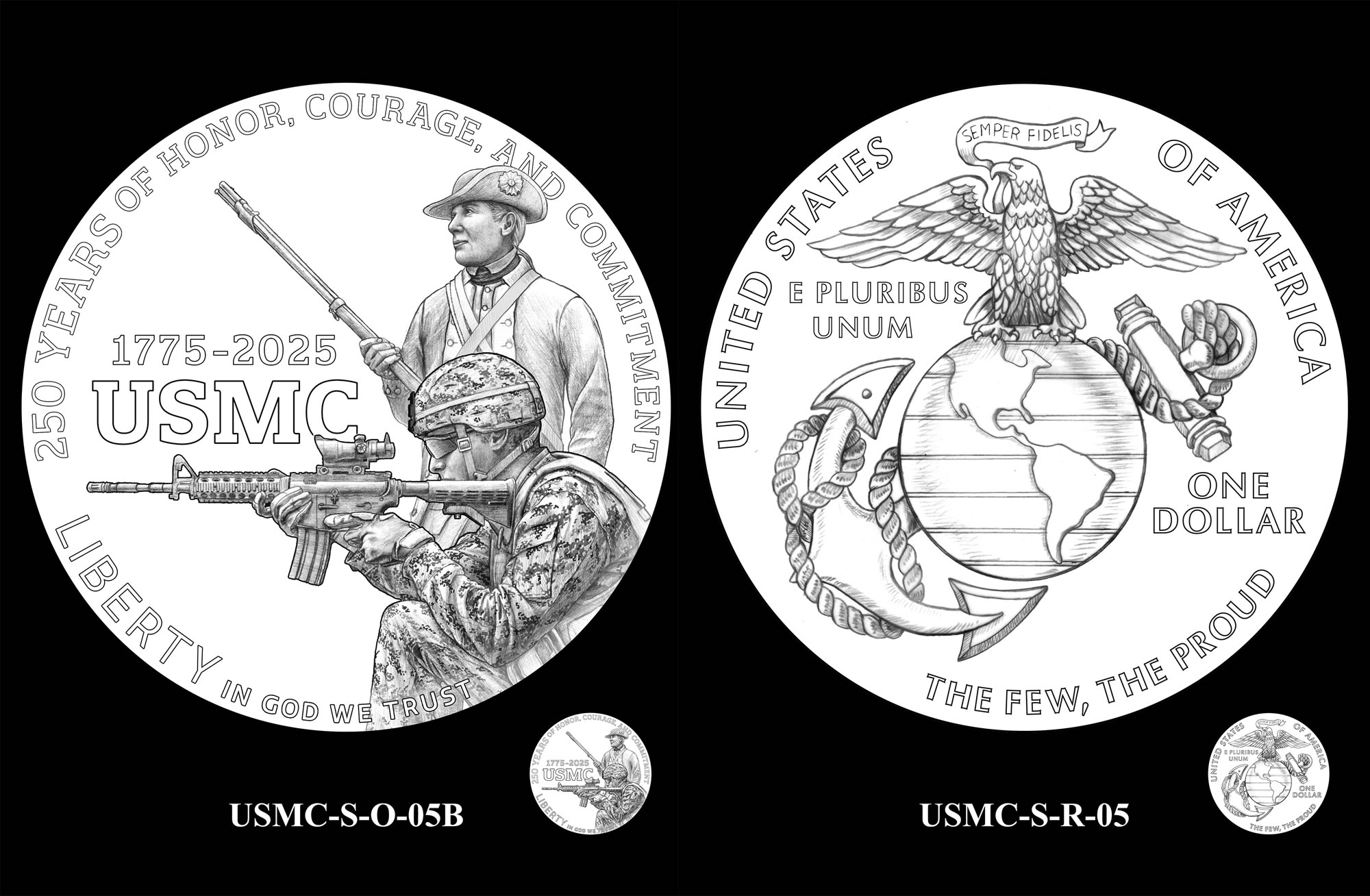 The United States Mint revealed over sixty potential designs for commemorative coins that recognize the 250th anniversary of the U.S. Marine Corps in 2025. As directed by Public Law No: 118-10, the U.S. Mint will manufacture and sell $5 gold coins, silver dollars, and clad half dollars as a part of the anniversary celebration.