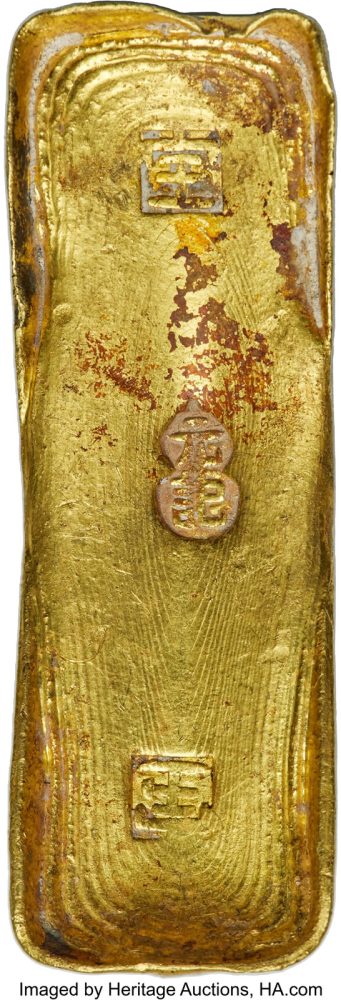 Among the half dozen lots in the auction from the Coenen Collection is a Qing Dynasty. temp. Qianlong gold Boat-Shaped Sycee of 10 Taels ND (c. 1750) Certified MS61 by Gong Bo Grading. It is an iconic gold ingot, seen primarily among those salvaged from the Dutch East Indiaman cargo vessel Geldermalsen by Captain Michael Hatcher in 1985, standing out through its unique shape and design that suggest its use for trade with the Dutch. Wrecked in the South China Sea on January 18, 1752, the Geldermalsen carried 147 gold bars and ingots along with a significant cargo of porcelain.