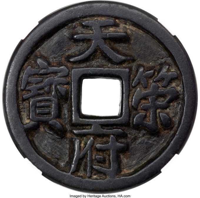 The Ten Kingdoms – Kingdom of Chu. Supreme Commander Ma Yin (907-951) Tiance Prefecture Treasure Cash ND (911) Certified 85 by Gong Bo Grading is one of 46 lots in the auction from the W&L Collection and a stunning example of this rare heavy cash emission minted to commemorate Ma Yin’s rank of Supreme Commander of Tiance, Hunan given by Emperor Ta Zu of the Liang Dynasty. Rarely does this type make appearance at public auction and when it does, it never is of such high quality.