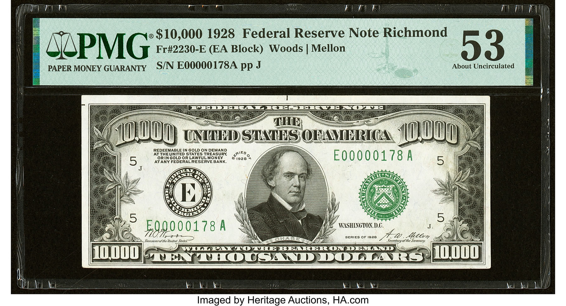 - A Fr. 2221-H $5,000 1934 Federal Reserve Note. PMG Very Fine 25 – from the Dwane Johansen Collection and one of just seven known: $120,000