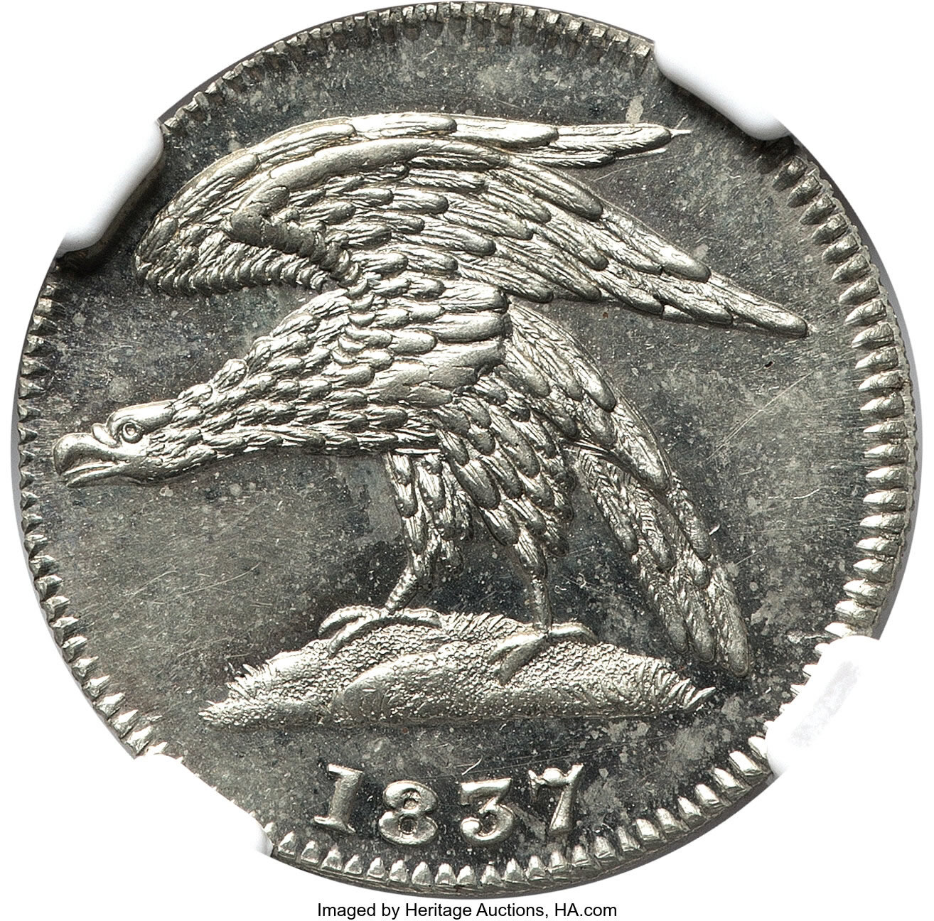 1837 Low-43A Bushnell Fantasy, MS61 - An 1837 Feuchtwanger Three Cent Token, Low-118, MS65 NGC that is tied for the finest of its kind: $26,400