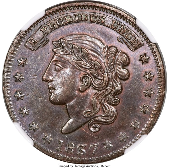 - An 1837 Low-43A Bushnell Fantasy, MS61 NGC: $28,800