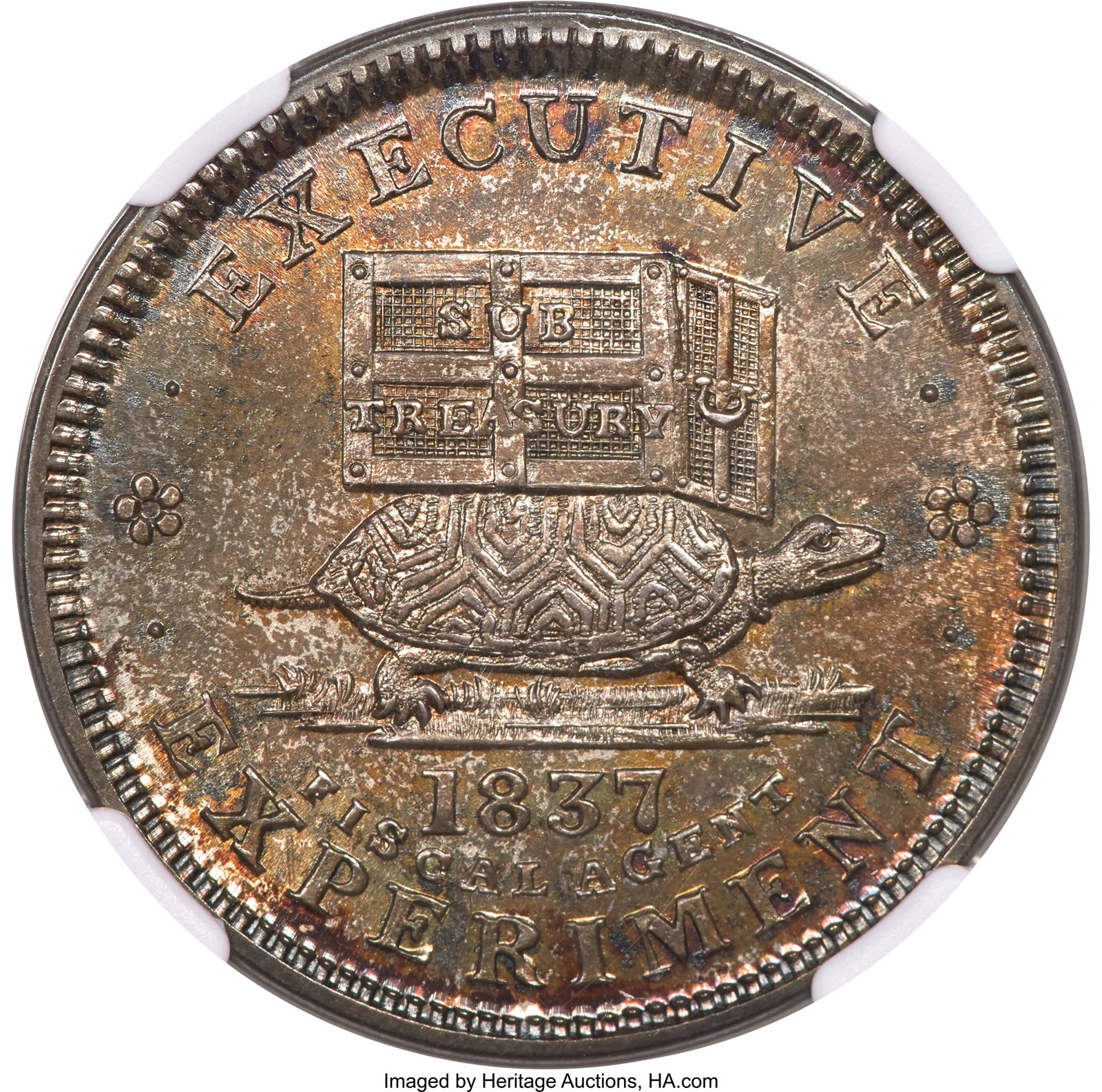 "The Robert A. Schuman, M.D. Collection of Hard Times Tokens included the most complete die variety collection of tokens that Dr. Lewis Feuchtwanger produced," says Heritage Senior Numismatist Mark Borckardt. "Among those tokens was the finer of just two known examples of Low-50, the famous 1837 American Silver 25 Cents Token that realized $120,000 in just its third auction appearance since 1882."