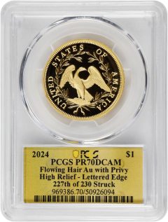Stack’s Bowers Galleries is proud to have been selected by the United States Mint to auction the privy mark 2024 Flowing Hair gold coins and is excited to present them to the collecting community in their exclusive December sale. For more information about these historic 230th Anniversary gold coins or to register for bidding in the auction, please contact Stack’s Bowers Galleries today at Info@StacksBowers.com or 800-566-2580.