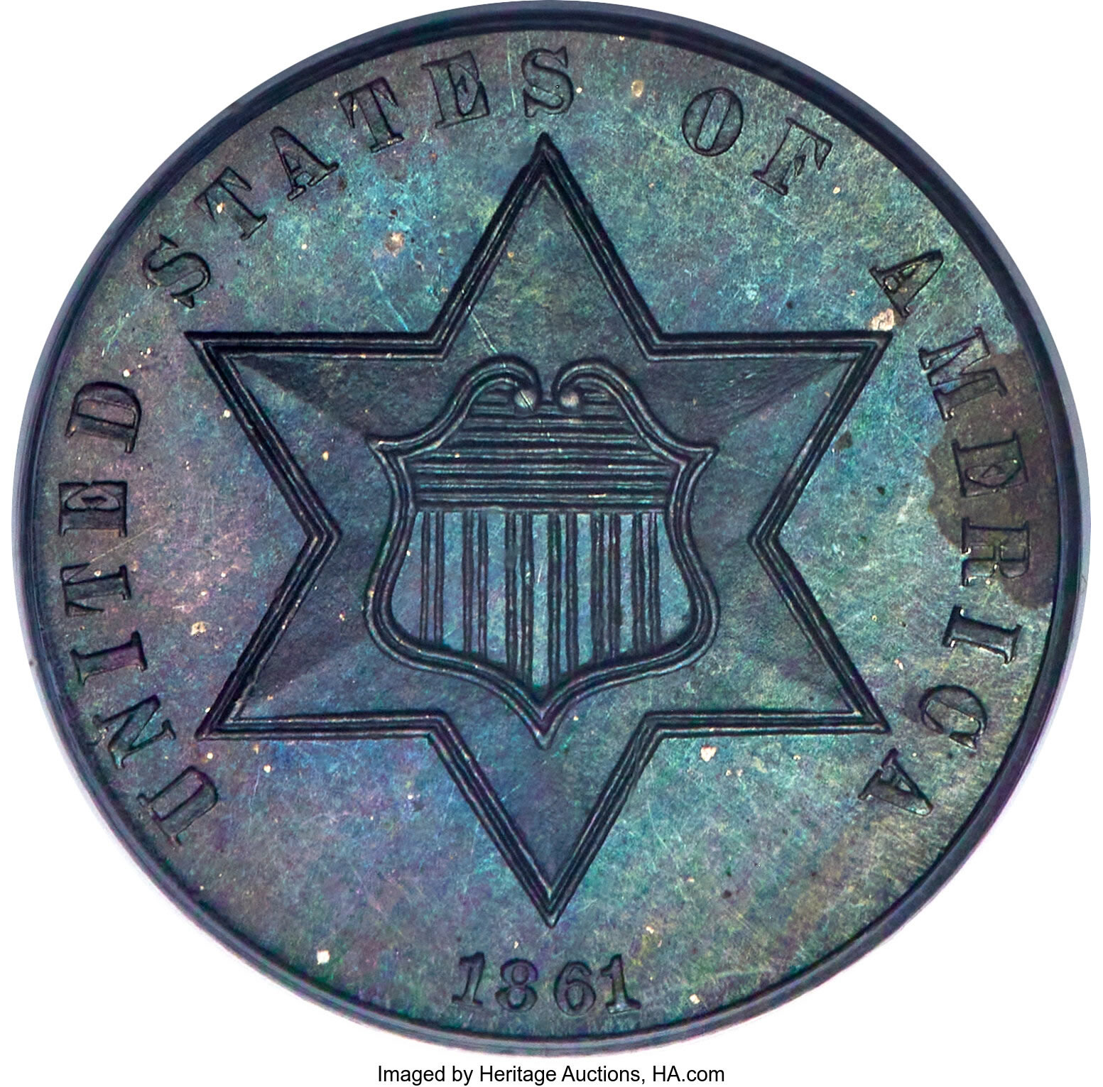 The individual issues are almost universally condition rarities at the upper grade levels, and the proof Seated dollar of this date especially is a notorious rarity in grades above PR65. The proof Seated dollar is the finest 1861 proof dollar at PCGS. Just 1,000 sets were produced, in agreement with the mintage totals for each 1861 proof denomination listed in the Guide Book, but Walter Breen suggested that probably 300-400 "sold as sets, others as individual coins, the remainder … melted in 1862."