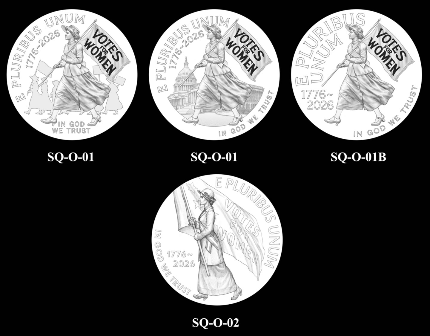 U.S. Mint images and descriptions of all proposed 2026 Suffrage quarter designs are provided below.