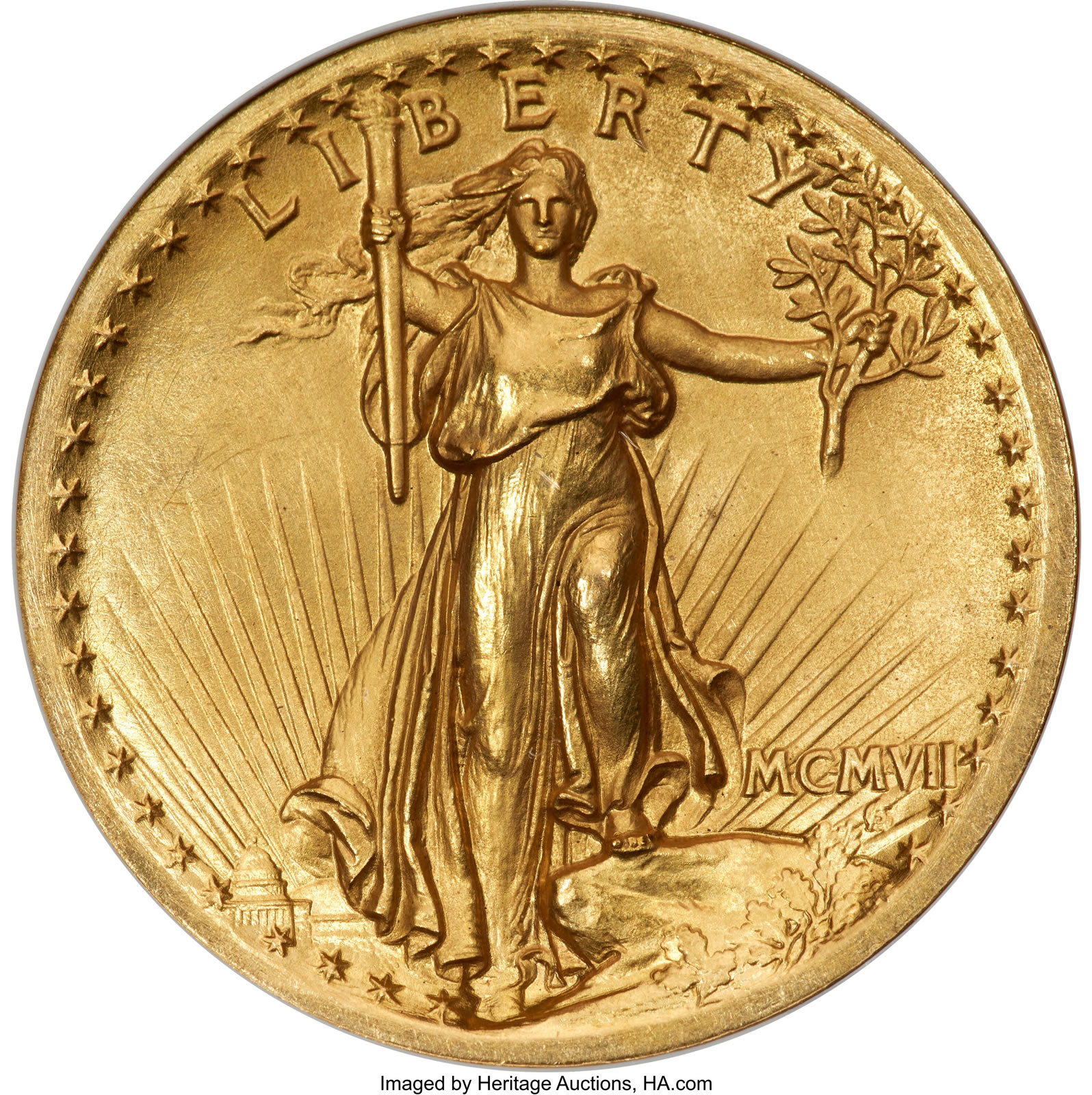 - A 1907 High Relief Double Eagle, MS65+ PCGS: $48,000