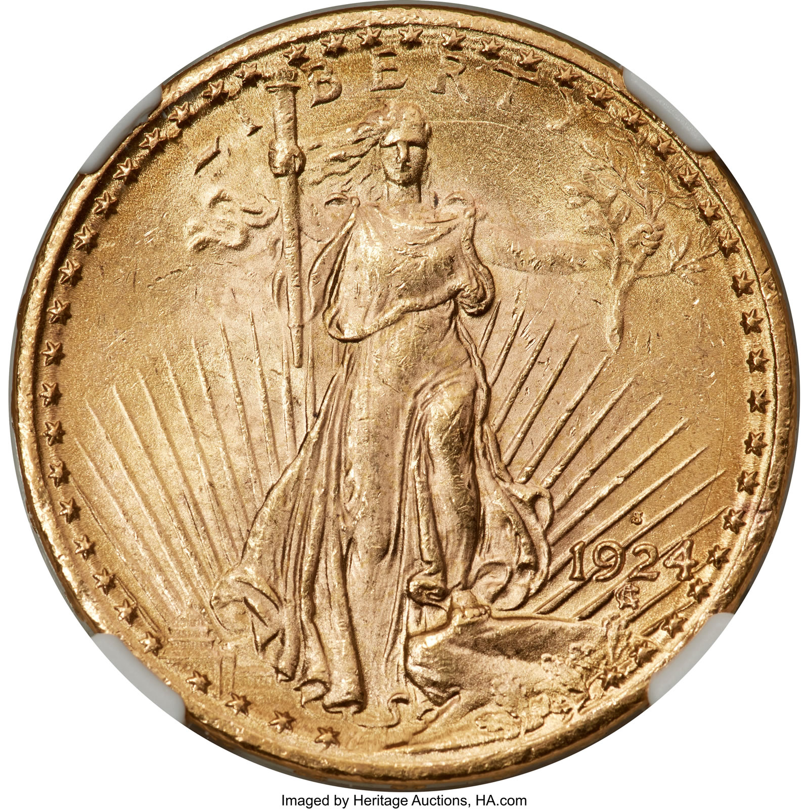 - Two examples of an 1857-S Liberty Double Eagle, MS66+ PCGS. CAC from the S.S. Central America: $43,200 each