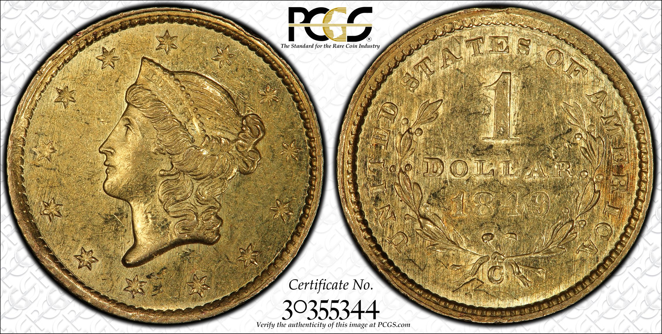 The addition of the 1849-C Open Wreath Gold Dollar completes the entire collection of Charlotte Gold coins for the D.L. Hansen Collection. This marks the first time that a collector has ever completed such a set of this quality, with the PCGS Registry Set displaying the Hansen Collection as the only complete set of Charlotte Gold issues. This monumental feat, according to Doug Winter’s book, Coins of the Charlotte Mint, has only been accomplished by two to three previous collectors, none of whom have owned an uncirculated example of this elusive date.