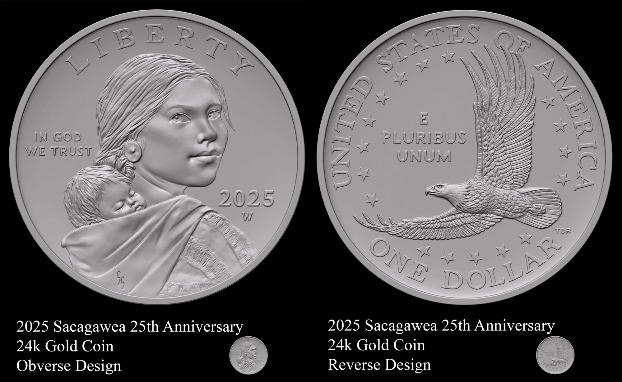As proposed, the 2025 Sacagawea 25th Anniversary Gold Coin would be struck in a half-ounce of gold, with a diameter just 20 thousandths of an inch larger than the original dollar.