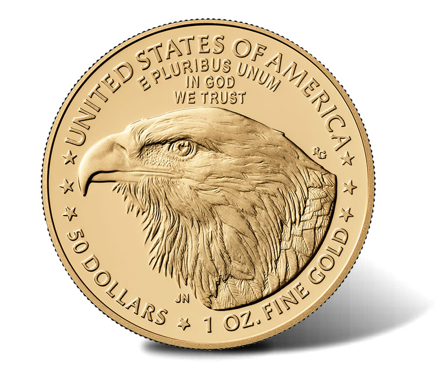 The largest of the individual coins is the one-ounce piece, followed by fractional sizes of one-half ounce, one-quarter ounce, and one-tenth ounce. They carry face values of $50, $25, $10, and $5, respectively, and are each struck in 22-karat gold (91.67% gold, 3.0% silver, balance copper) at the U.S. Mint’s West Point facility.