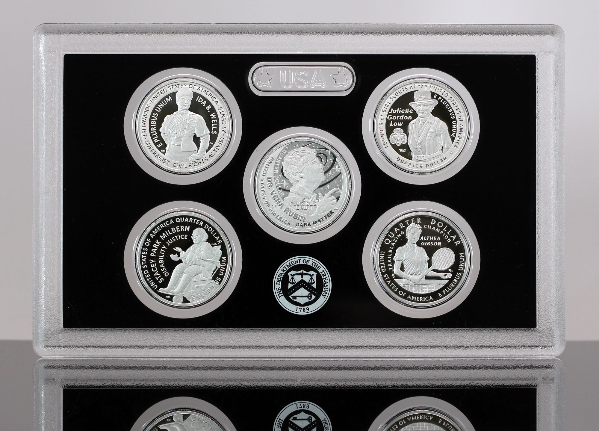Last week, the United States Mint began selling its 5-coin proof set of 2025 silver quarters honoring Ida B. Wells, Juliette Gordon Low, Dr. Vera Rubin, Stacey Park Milbern, and Althea Gibson. Released on April 22 for $95, the set posted six-day opening sales of 27,768 units, representing 79.4% of the possible 34,980 sets and making it the Mint’s best weekly seller.