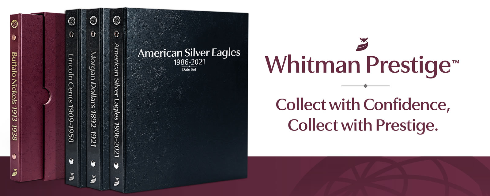 Published by Whitman®, the most trusted name in numismatic literature, Whitman Prestige™ albums are available now at Whitman.com, Whitman’s Official eBay Store, bookstores, hobby shops, and authorized retailers nationwide.