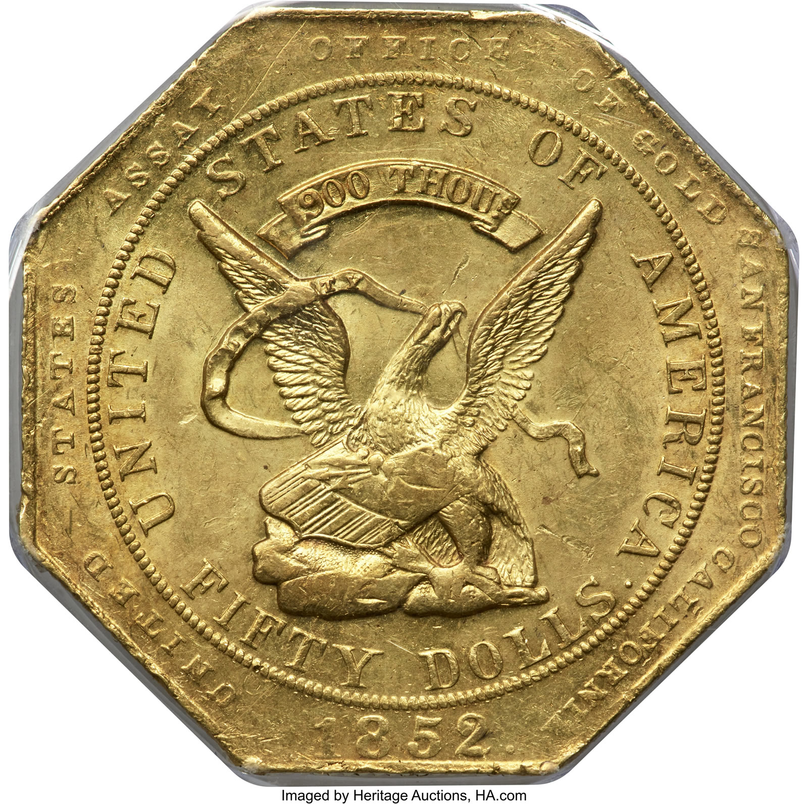 1852 $50 Assay Office Fifty Dollar, 900 Thous. MS64 PCGS - An 1880 Flowing Hair Stella, PR66 Cameo NGC: $492,000
