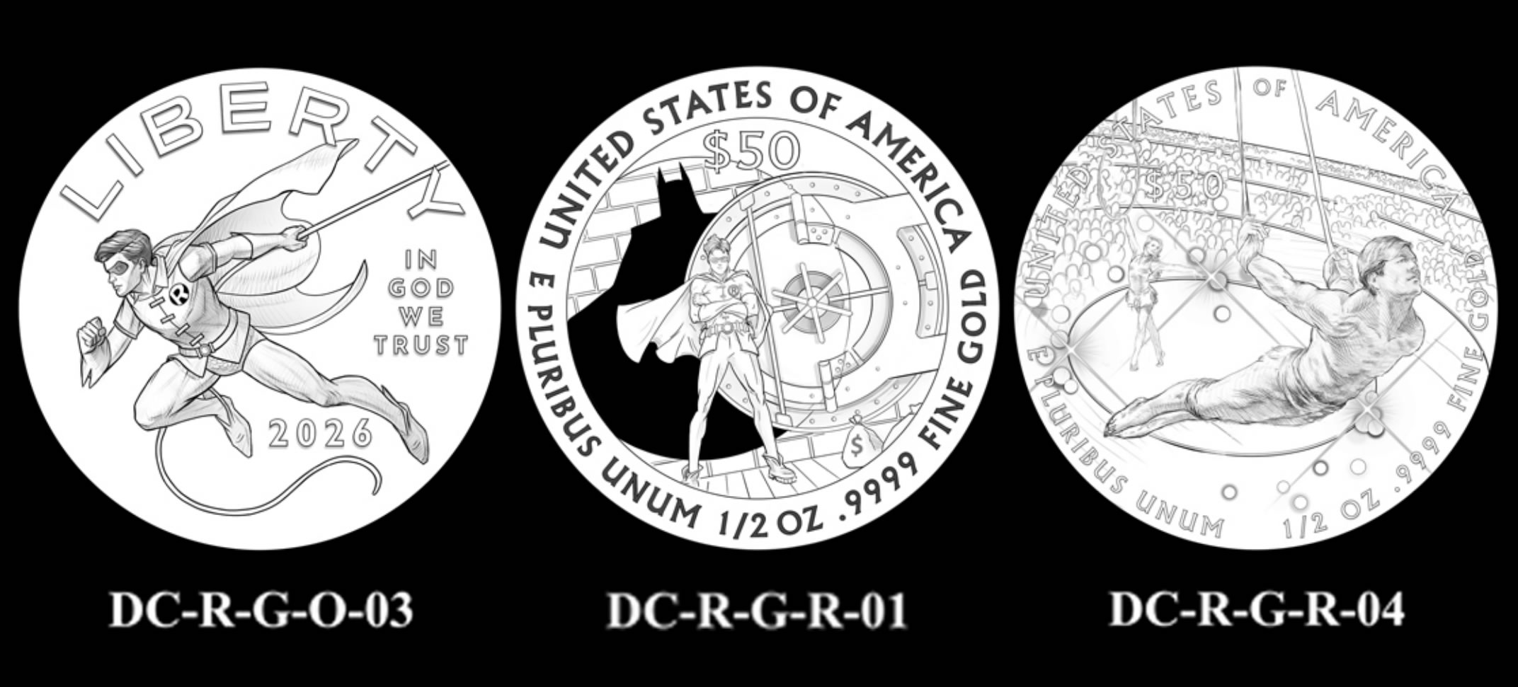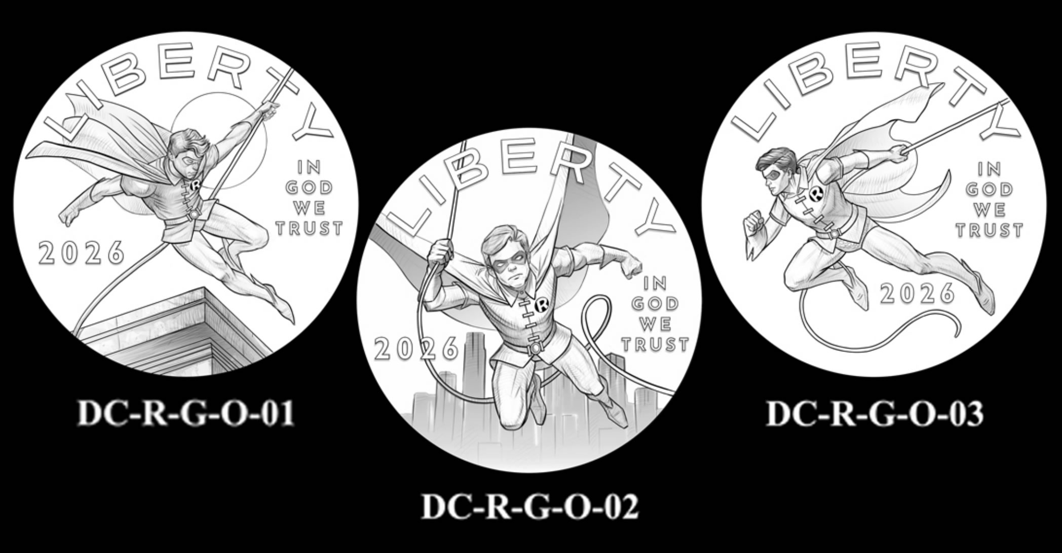 Candidate designs featuring DC’s Robin — Batman’s loyal protégé — for a 2026 release in the U.S. Mint’s Comic Art Coin and Medal Program have been unveiled and reviewed. The Citizens Coinage Advisory Committee (CCAC) considered the designs on Sept. 16, followed two days later by the Commission of Fine Arts (CFA). Both panels supported the same obverse but preferred different reverses — mirroring their split decisions on the 2026 Green Lantern designs.