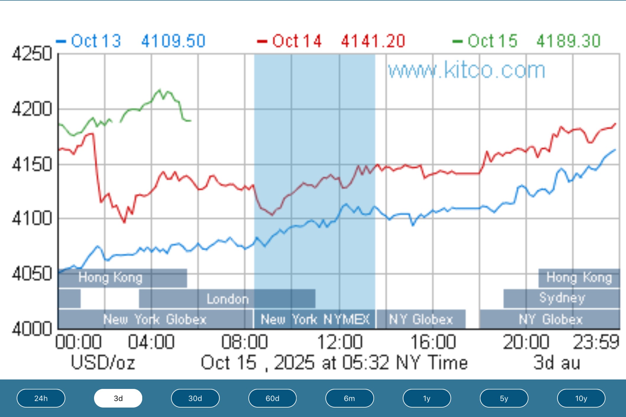 An hour ago in the previous thread, I said: “U.S Mint Gold coins will go up in price today(10/15/25) by 3 more tiers on the pricing range table, unless the PM fix happens to drop to $3,973.49 or lower. With daily spot gold currently at $4,208.10, at 10:22am ET, 8 minutes before LBMA close, I have a hard time fathoming that the PM fix would drop to that amount. Out of the last 12 AM/PM LBMA fixes, the last time we were at or below $3973.50, was for the AM fix on 10/7, which happened to be $3,962.30. The LBMA… Read more »