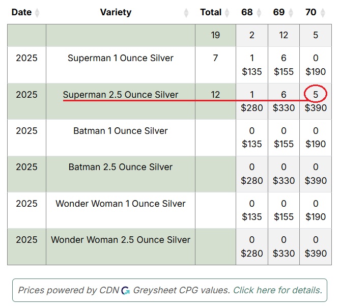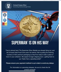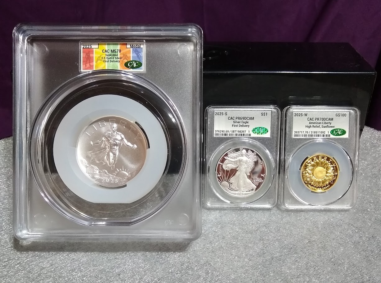 KC&SO, HarryB, REB, Rick and others(?) have been keeping us up to date,informed, while patiently waiting for their 2025 Comic Art 24-Karat Gold Proof Coin – Superman™”. The coins and silver medals went on Pre-sale beginning July 24 and the gold coin is still currently listed as a Pre-sale item. The Superman 1oz Silver Medal subscription was open and available until September 22. I could be mistaken, however at one point I believe the Mint had listed on the product page, shipping of the gold coin beginning on September 25? A week ago(10/18) HarryB posted a picture(see below) of an… Read more »