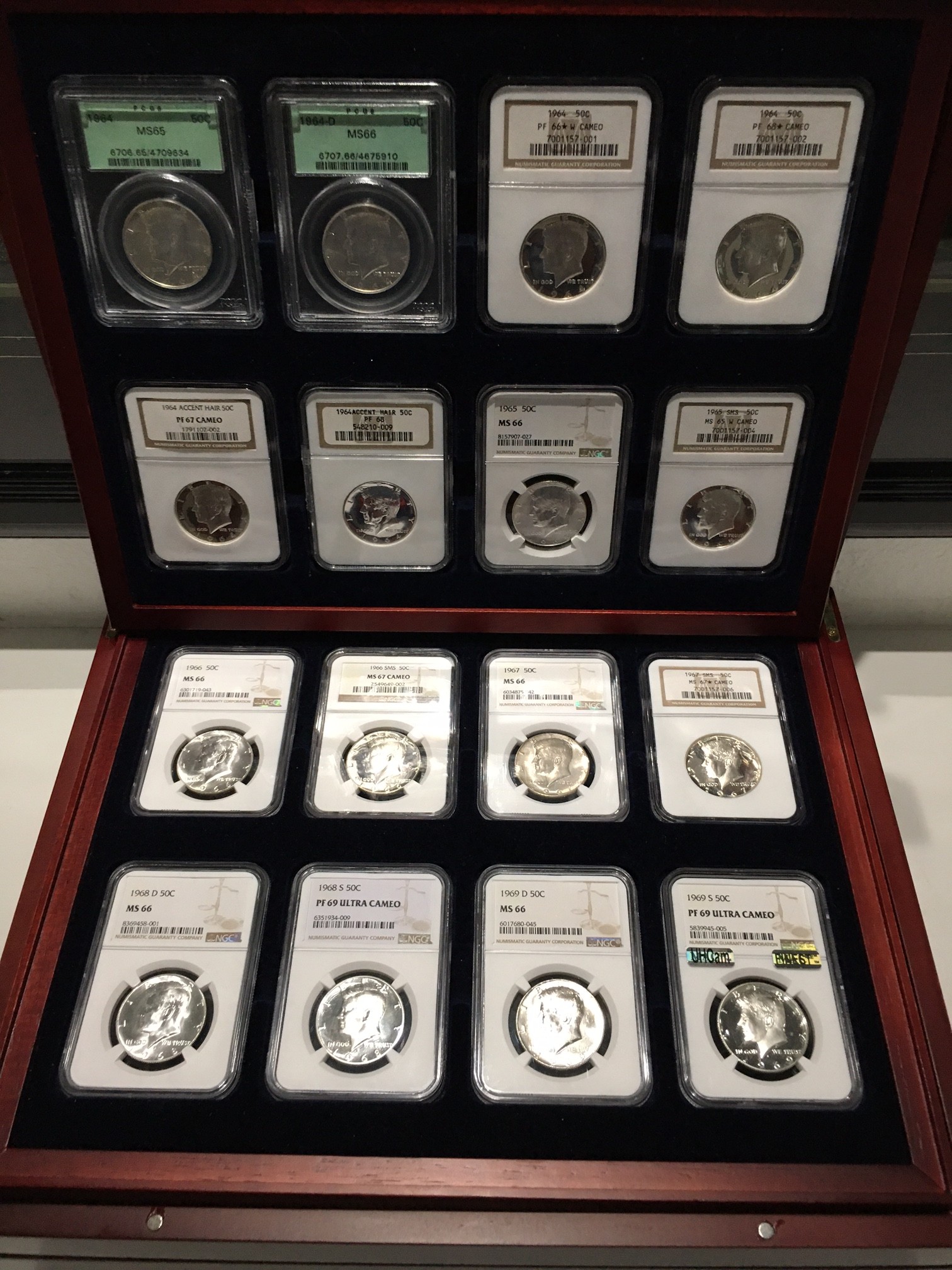 Cali, The Kennedy series is a vast complex series and has many interesting sub-sets. The best way to start is to pick a sub-set of interest and knock each one out one at a time. These sub-sets include…. a. All 1964 90% silver coins – MS, cameo, UC/DCAM, and accented hairs. b. All 1965-1970 40% silver coins – MS business strikes, SMS cameo, SMS UC/DCAM, and proofs in PR69 UC/DCAM or better. c. All 1776-1976 Dual Date silver Coins – MS, UC/DCAM. d. All 1992-2018 90% Silver proofs in PR70 UC/DCAM. e. All 2014 50th Anniversary Coins in 70. f.… Read more »
