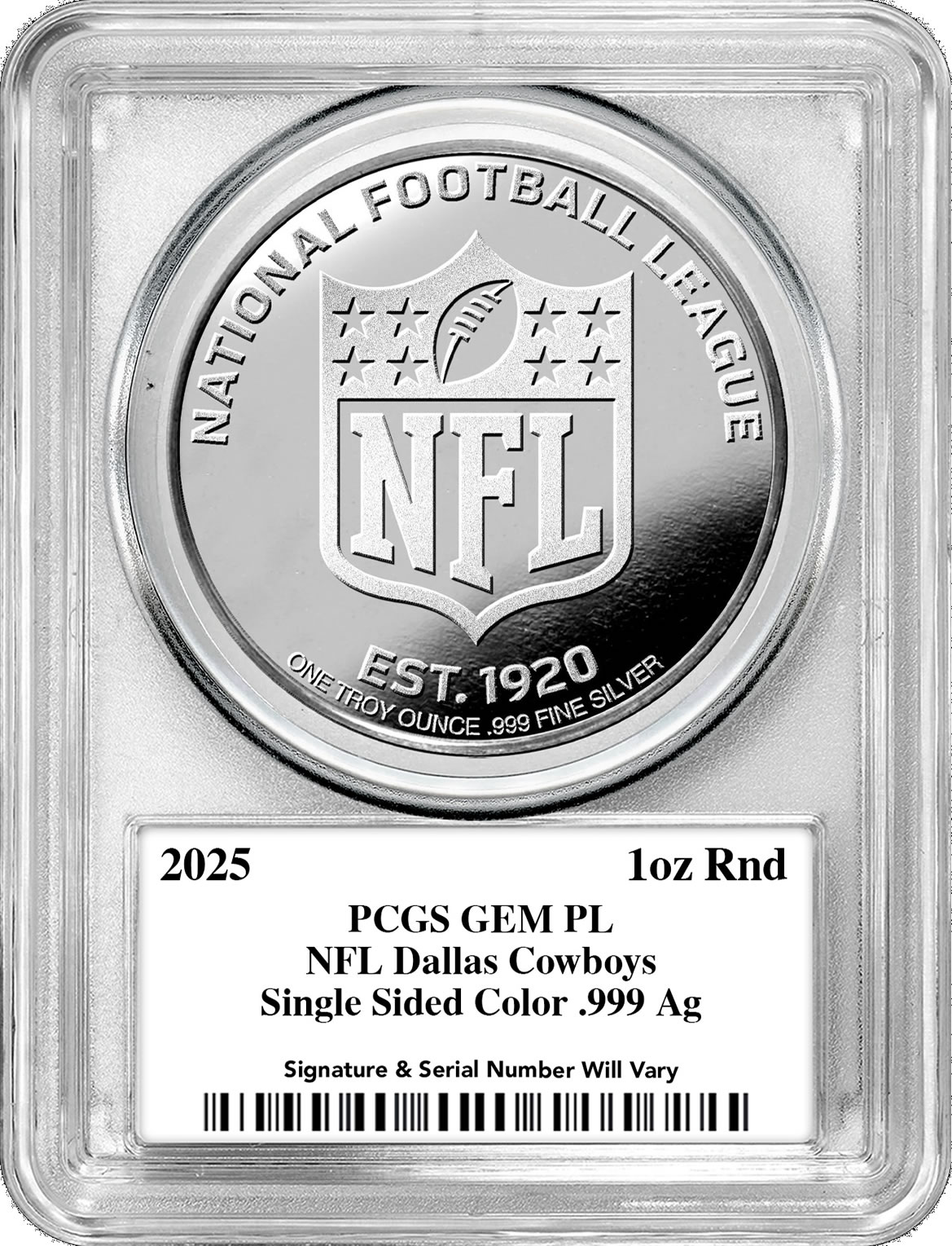 The official NFL-licensed rounds are superbly struck by The Highland Mint (TheHighlandMint.com). Each precious metal round is certified and encapsulated by Professional Coin Grading Service (PCGS.com) with the signature of one or more football legends on the PCGS insert.